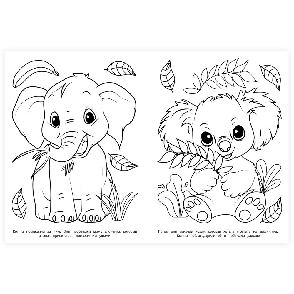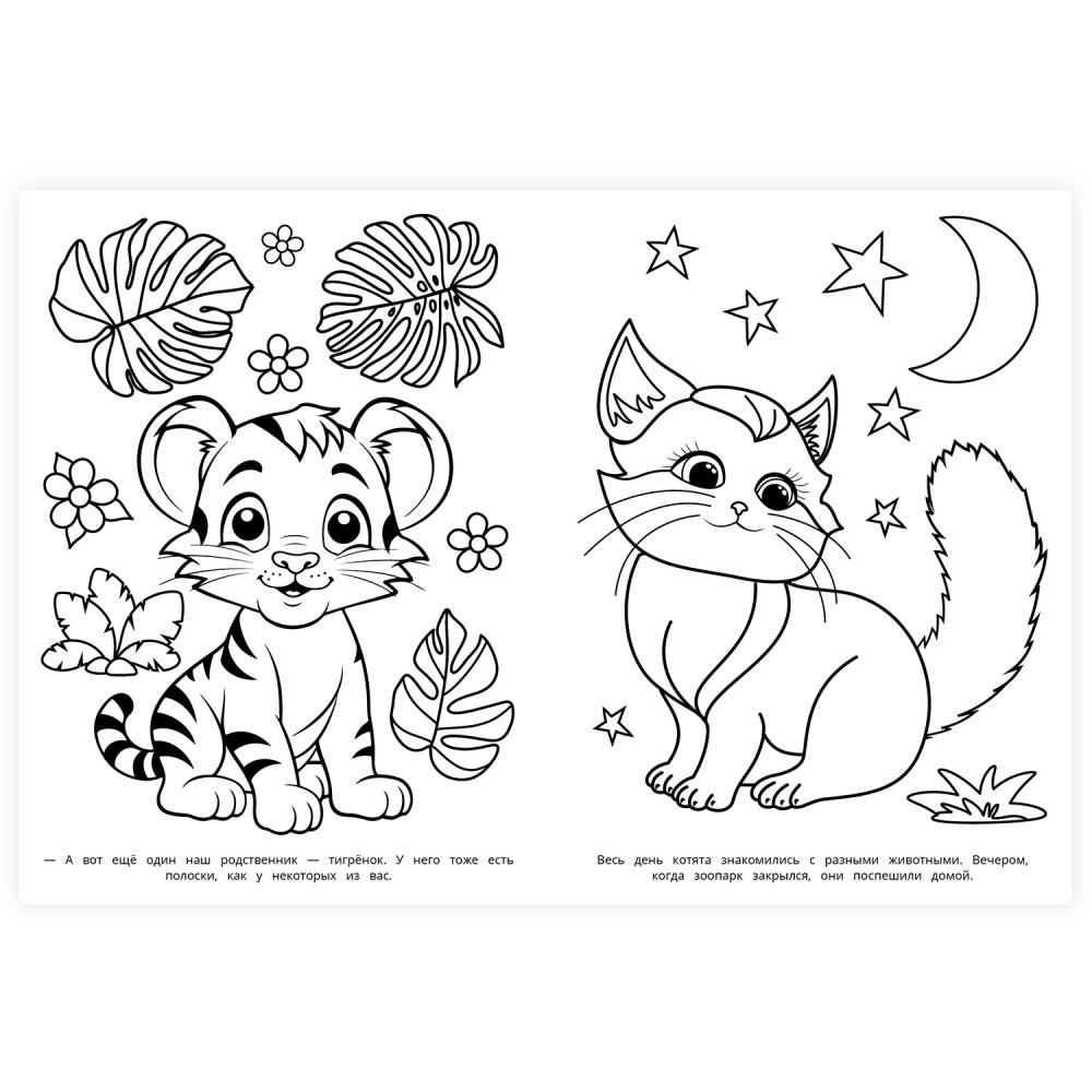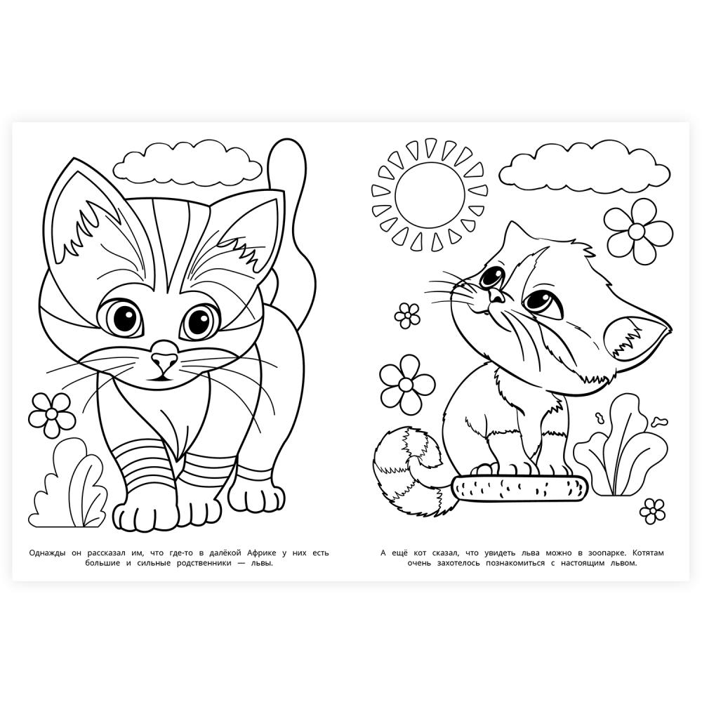 Эта увлекательная раскраска с забавными питомцами непременно понравится вашему ребёнку. В ней он найдёт интересные картинки с чёткими контурами и сюжетными текстами к ним. Благодаря удобному формату раскраску можно взять с собой в путешествие.