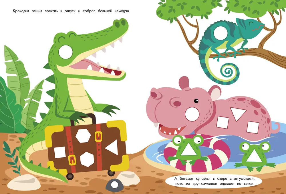 Создайте яркие неповторимые картинки с нашими многоразовыми наклейками!С этой книжкой ребёнок не просто весело проведёт время, но и научится различать геометрические формы, разовьёт фантазию, пространственное мышление и аккуратность. Кружочки, квадратики, ромбики, прямоугольники – выбирайте наклейку и дополняйте забавные картинки! Играйте и развивайтесь!