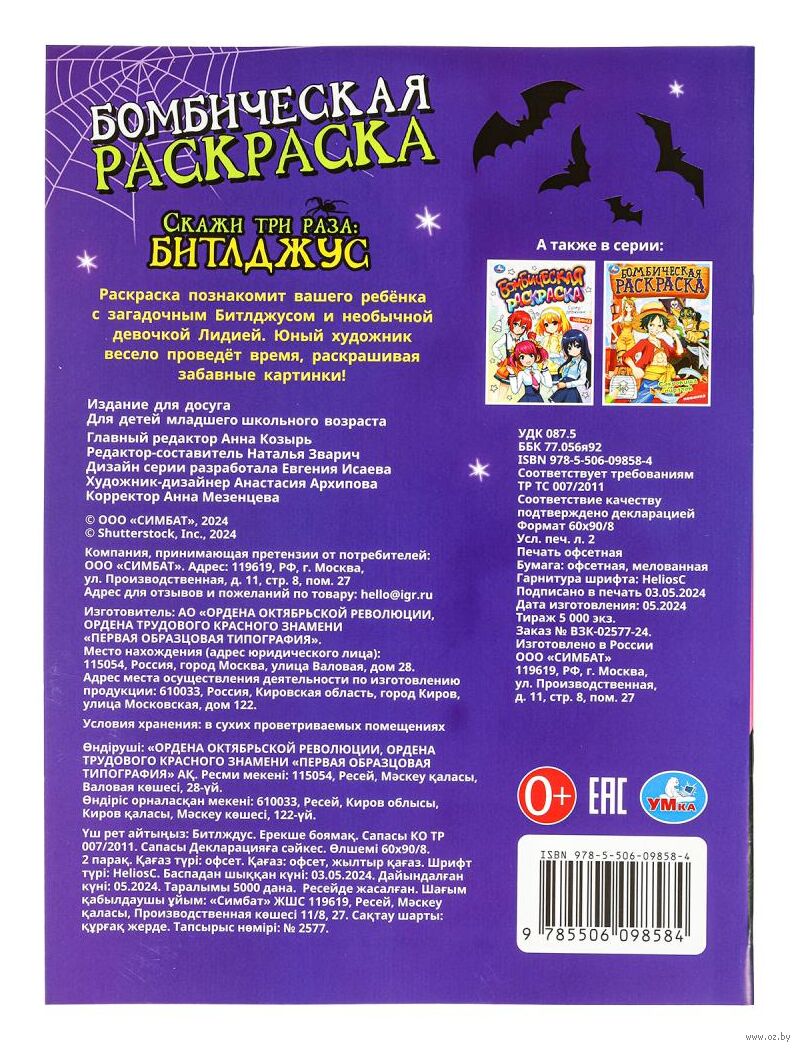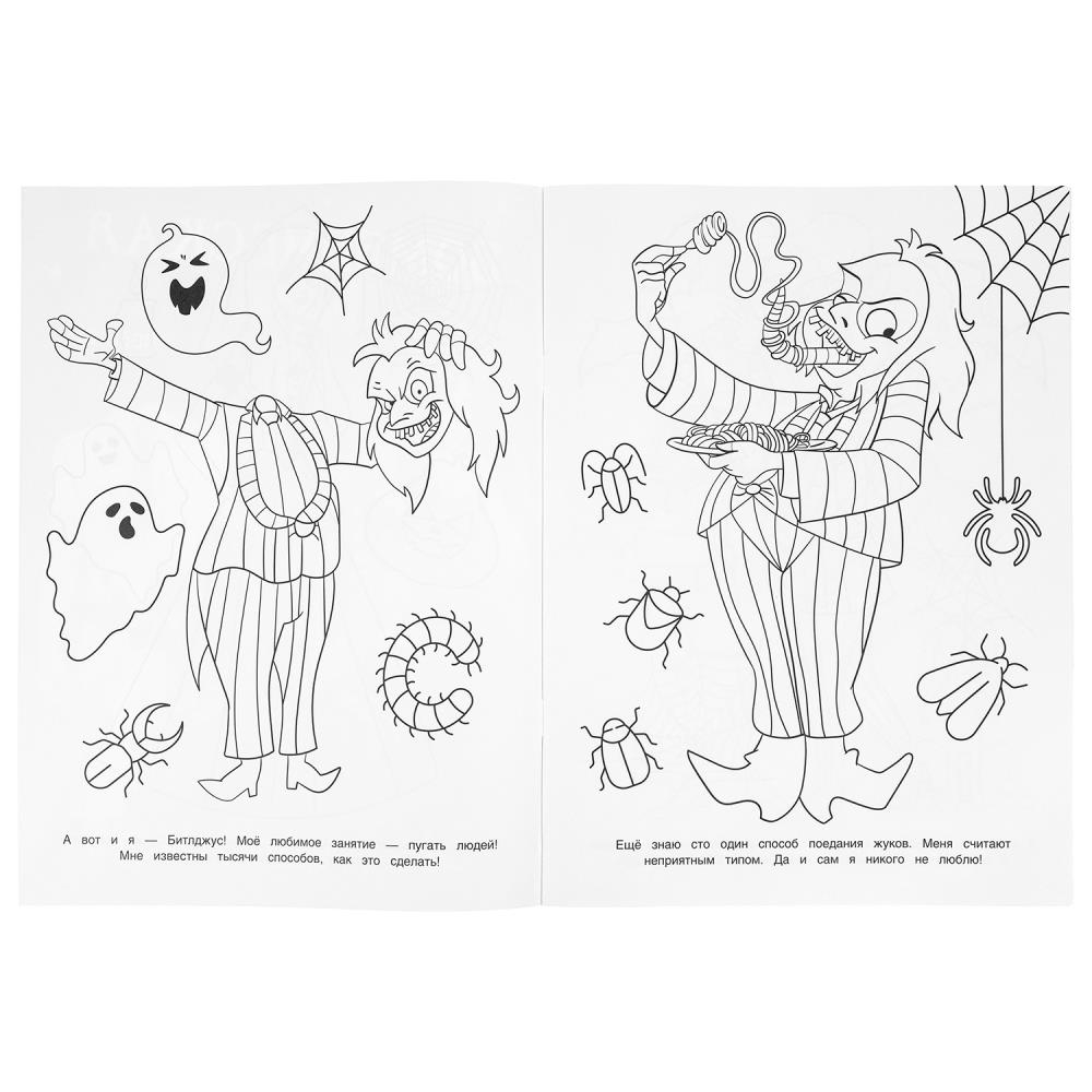 Эта занимательная раскраска с оригинальными персонажами: загадочным Битлджусом, необычной девочкой Лидией и забавными монстрами и привидениями, поможет ребёнку весело провести время, узнать много нового о жизни привидений, а также потренировать руку к письму. Внутри детей ожидают интересные картинки с чётким контуром и сюжетные тексты к ним. Благодаря удобному формату раскраску можно взять с собой в дорогу.