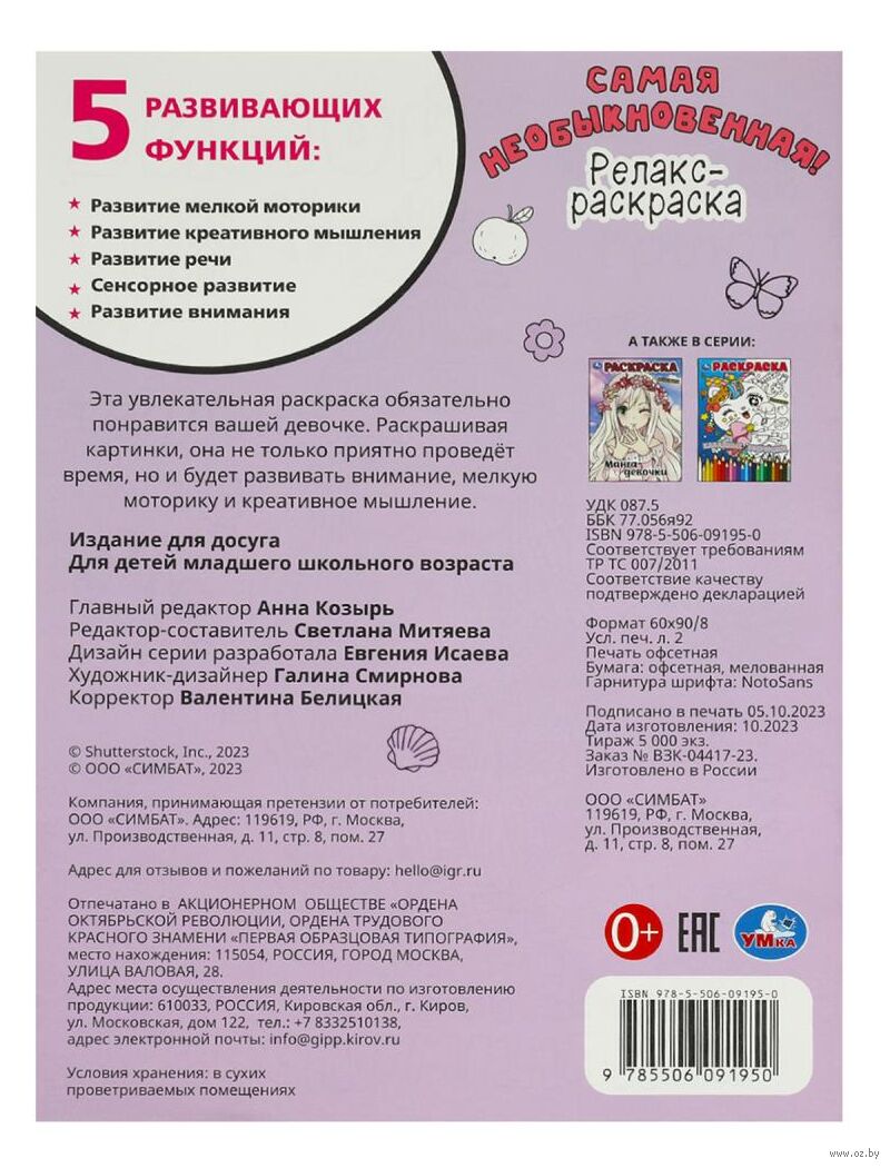 Удивительно красивую раскраску с изящными детализированными иллюстрациями интересно рассматривать и раскрашивать. Данное издание не только надолго займёт ребёнка, но и поможет привить ему хороший вкус. Превращение картинки с мелкими деталями в разноцветный арт-объект способствует снятию напряжения, успокаивает и помогает увлекательно провести время.