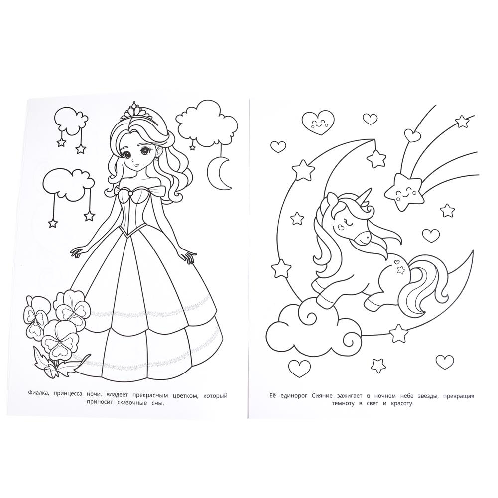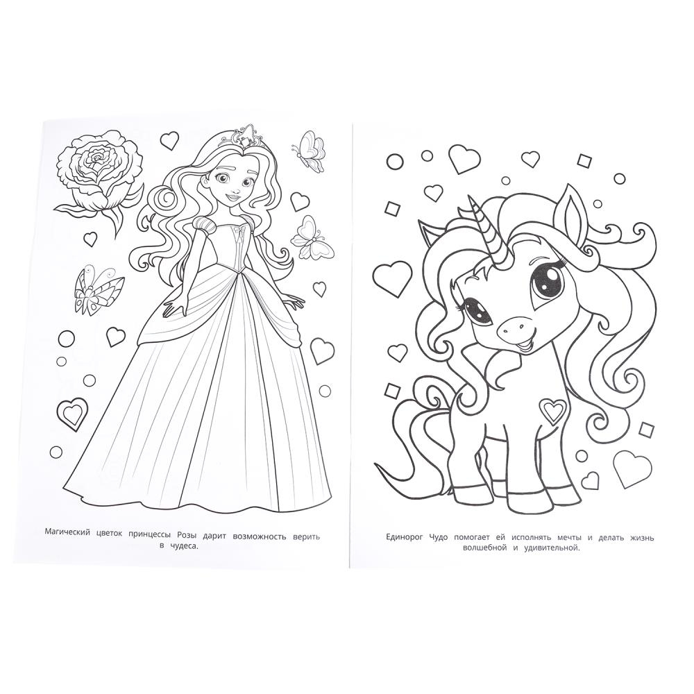 Эта увлекательная раскраска с очаровательными принцессами и волшебными существами непременно понравится вашему ребёнку. В ней он найдёт интересные картинки с чёткими контурами и сюжетными текстами к ним. Благодаря удобному формату раскраску можно взять с собой в путешествие.