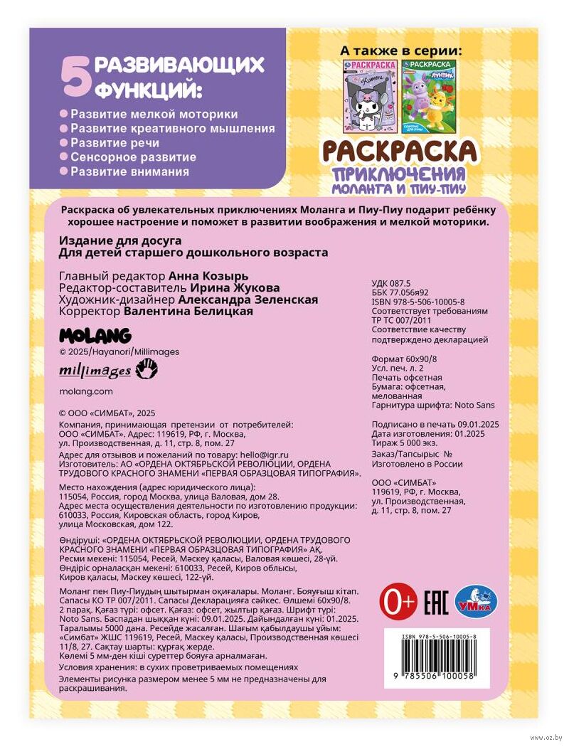 Вашему ребёнку непременно понравится эта увлекательная раскраска про энергичного, добродушного кролика, который превращает даже обычные дела в захватывающие приключения, и его лучшего друга цыплёнка Пиу-Пиу. Она отличается наличием интересных картинок с чёткими контурами и сюжетных текстов к ним. Благодаря удобному формату раскраску можно взять с собой в путешествие.