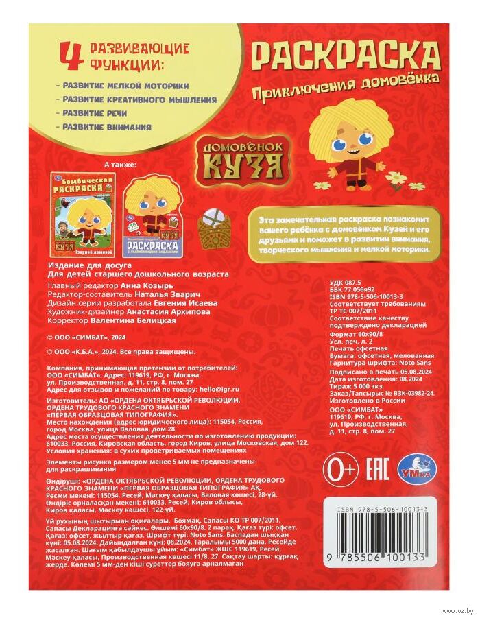 Эта занимательная раскраска про приключения забавного домовёнка Кузи не только скрасит досуг ребёнка, но и поможет потренировать руку к письму. Внутри детей ожидают интересные картинки с чётким контуром и сюжетные тексты к ним. Благодаря удобному формату раскраску можно взять с собой в дорогу.