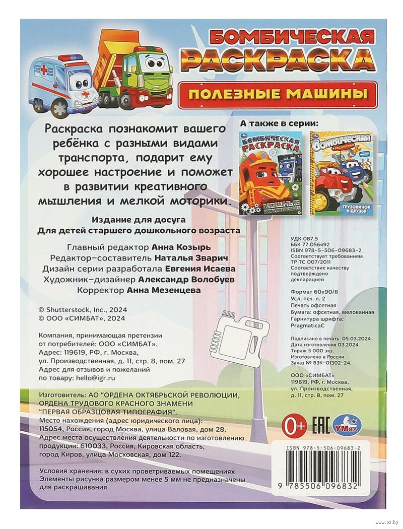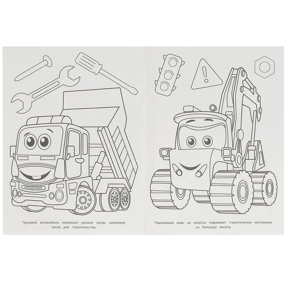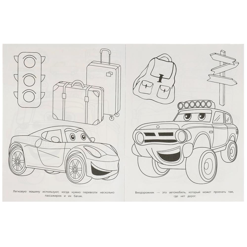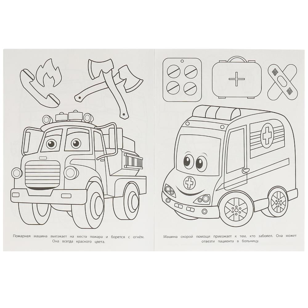 Эта занимательная раскраска с весёлыми машинками не только скрасит досуг ребёнка, но и расскажет ему о разных видах полезного транспорта, а также поможет потренировать руку к письму. Внутри его ожидают интересные картинки с чётким контуром и сюжетные тексты к ним. Благодаря удобному формату раскраску можно взять с собой в дорогу.