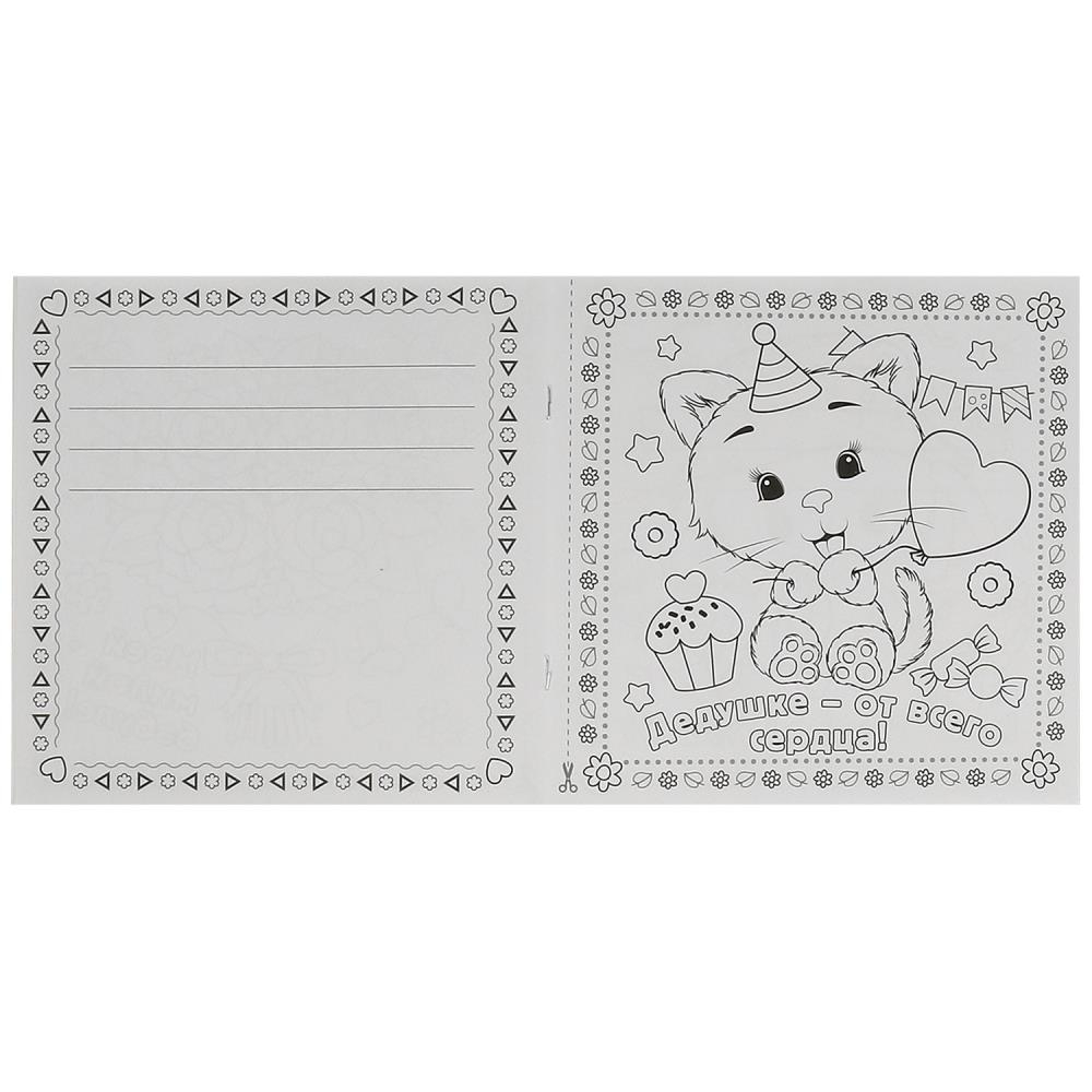 С помощью этих раскрасок-открыток малыш порадует своих родных и близких, ведь подарок, сделанный своими руками – самый лучший! Каждая открытка имеет место для подписи. Ребёнок может добавить свои пожелания, слова и поздравления на них. Просто нужно помочь ему вырезать по пунктиру уникальную открытку – и подарок-поздравление готов, что может быть ещё приятнее.