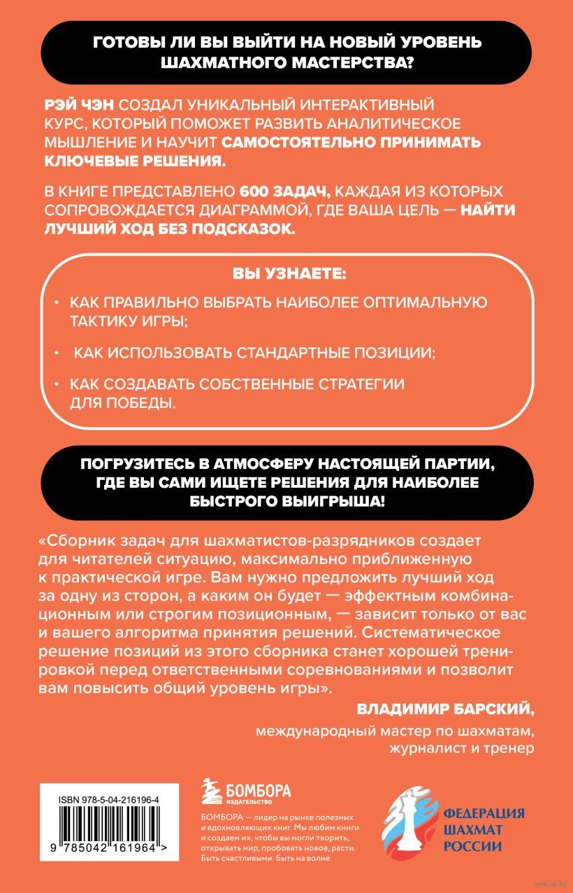 В книге представлено 600 задач, каждая из которых сопровождается диаграммой, где ваша цель – найти лучший ход без подсказок.
