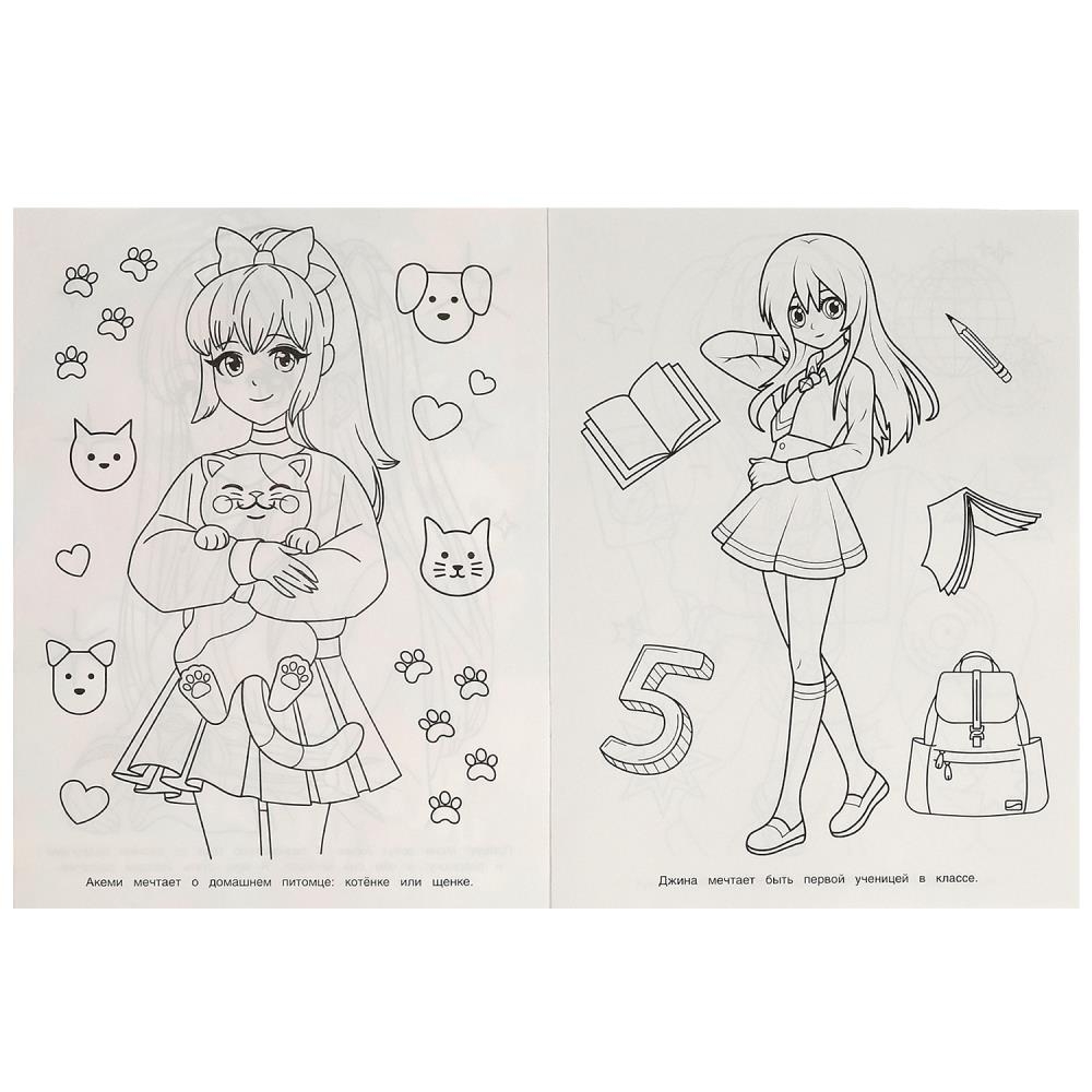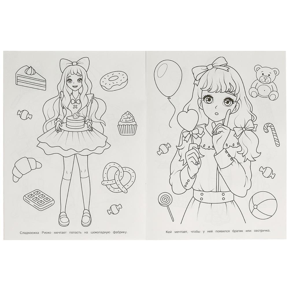 На страницах этой занимательной раскраски ребёнок познакомиться с очаровательными аниме-девочками и узнает, о чём они мечтают. Раскрашивая картинки с чёткими контурами, ваша принцесса замечательно проведёт время и потренирует руку к письму.