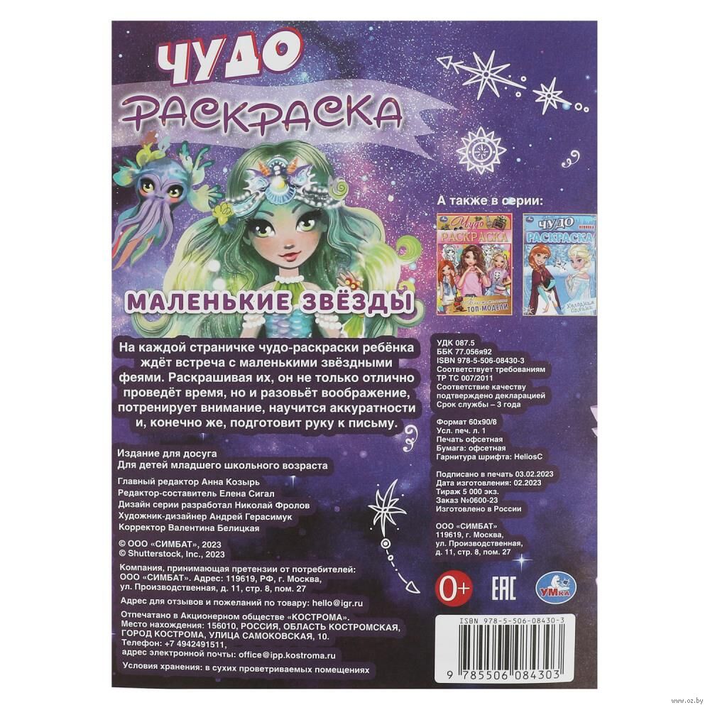 На каждой страничке этой чудо-раскраски ребёнка ждёт встреча с маленькими звёздными феями. Раскрашивая их, маленький художник не только отлично проведёт время, но и разовьёт воображение, потренирует внимание, научится аккуратности и, конечно же, подготовит руку к письму. Благодаря удобному формату раскраску можно взять с собой в путешествие.