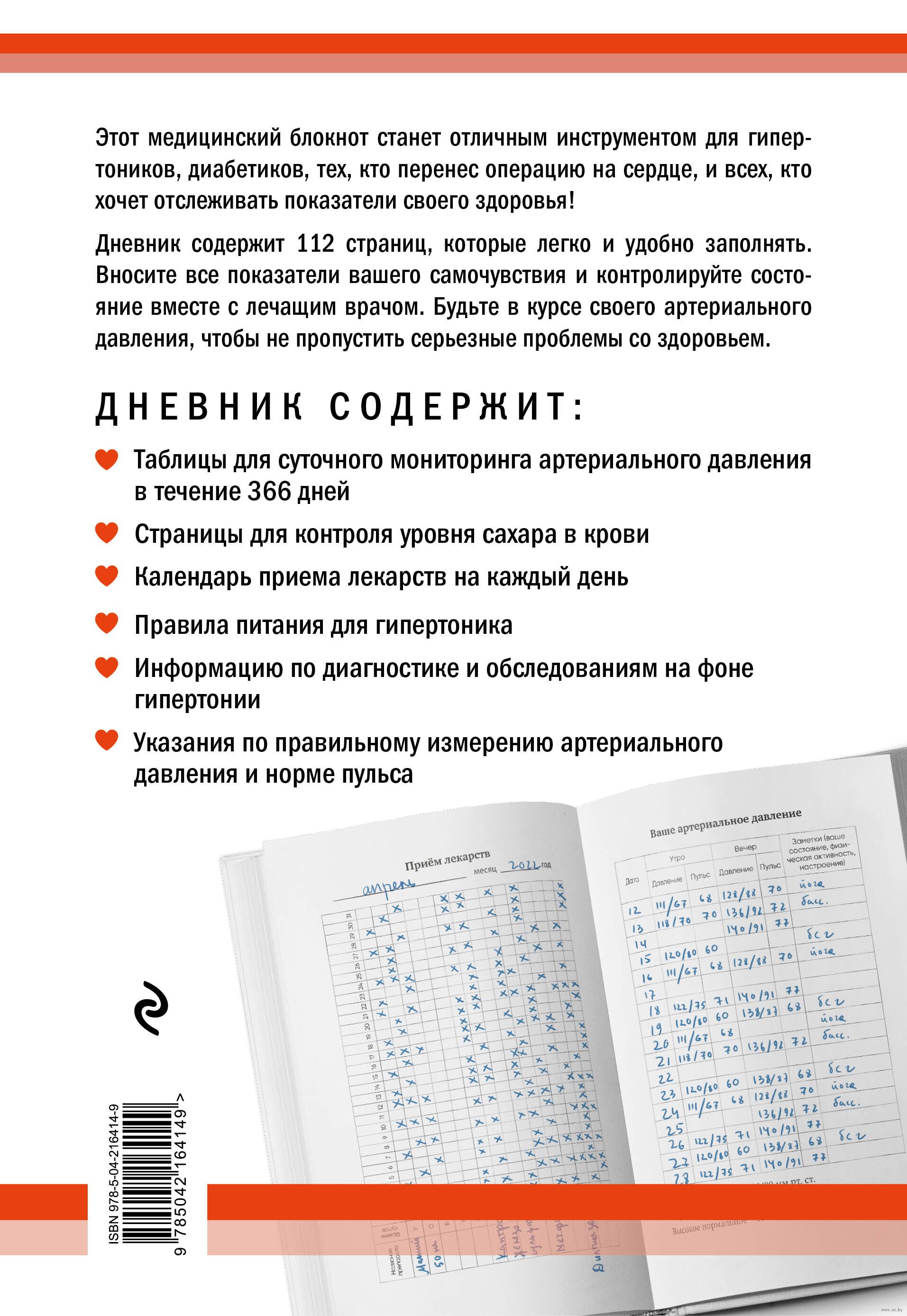 Этот дневник содержит 112 страниц для записи артериального давления. Идеально подходит для ежедневной записи показателей артериального давления, частоты сердечных сокращений и вашей активности! Вносите все показания врача в отдельном блоке, носите дневник с собой на приём или прогулку и будьте в курсе своих проблем с кровяным давлением, прежде чем они выйдут из-под контроля.