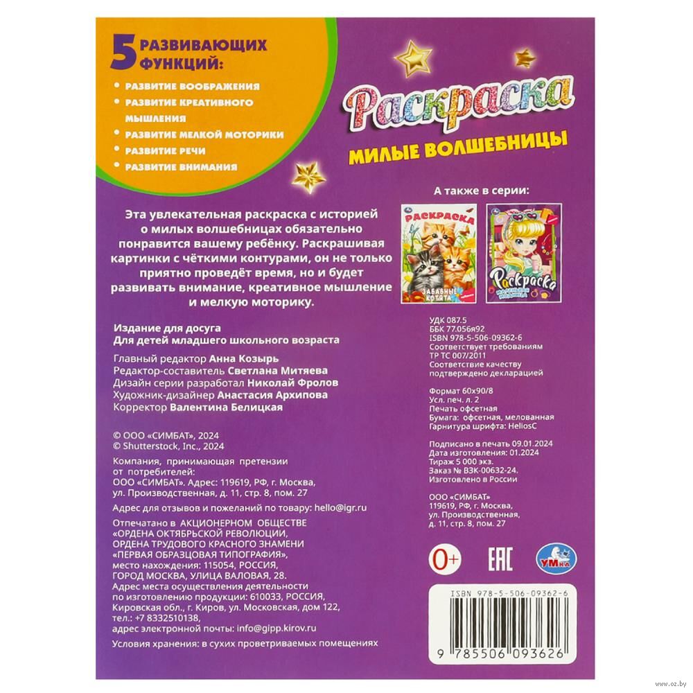 Эта увлекательная раскраска с очаровательными волшебницами непременно понравится вашему ребёнку. В ней девочка найдёт интересные картинки с чёткими контурами и сюжетными текстами к ним. Благодаря удобному формату раскраску можно взять с собой в дорогу.