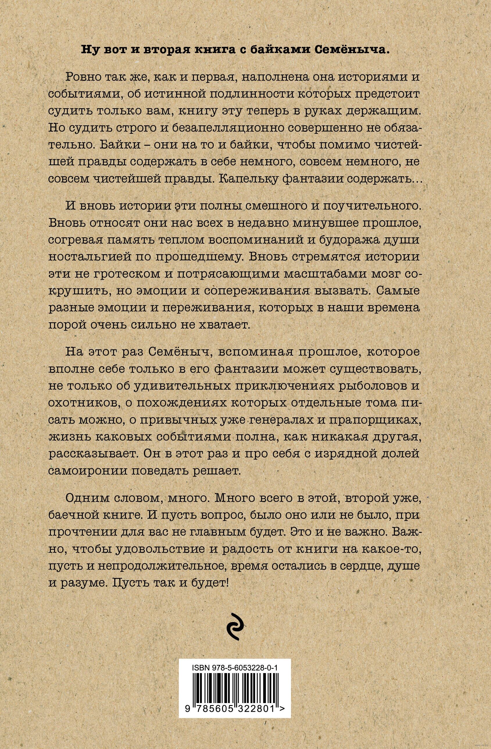 На этот раз Семёныч, вспоминая прошлое, которое вполне себе только в его фантазии может существовать, не только об удивительных приключениях рыболовов и охотников, о похождениях которых отдельные тома писать можно, о привычных уже генералах и прапорщиках, жизнь каковых событиями полна, как никакая другая, рассказывает. Он в этот раз и про себя с изрядной долей самоиронии поведать решает.