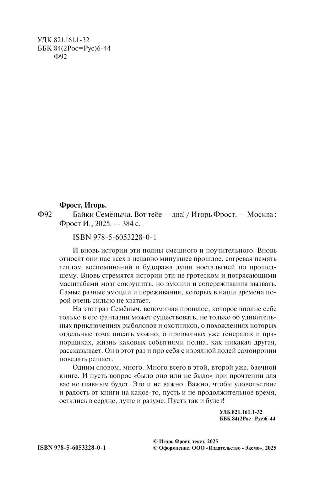 Одним словом, много. Много всего в этой, второй уже, баечной книге. И пусть вопрос "было оно или не было" при прочтении для вас не главным будет. Это и не важно. Важно, чтобы удовольствие и радость от книги на какое-то, пусть и не продолжительное время, остались в сердце, душе и разуме. Пусть так и будет!