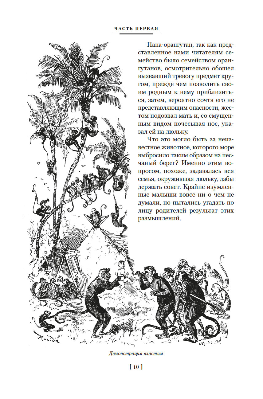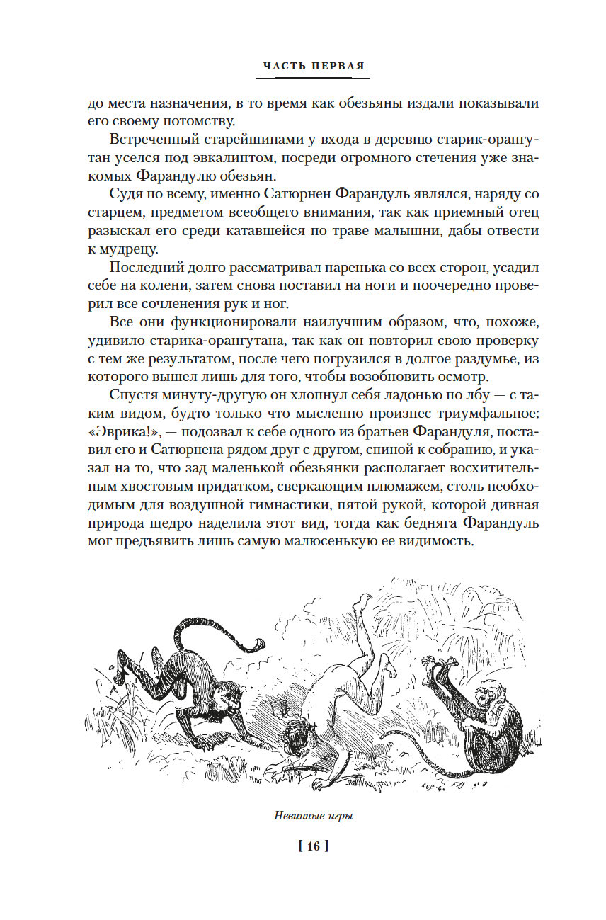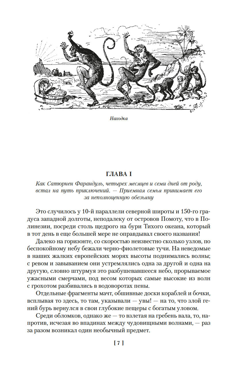 Робида считал Жюля Верна своим учителем, но не подражал ему слепо, а дополнил и переосмыслил старые сюжеты и даже предвосхитил некоторые находки писателей следующего века. Так, роман о Сатюрнене Фарандуле – искателе приключений, воспитанном обезьянами в далеких джунглях, был написан почти за сорок лет до знаменитых историй о Тарзане Э. Берроуза.