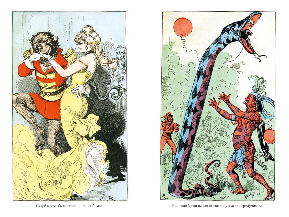 Путешествия, плавания и полеты в пять или шесть частей света, встречи с капитаном Немо и Филеасом Фоггом, хитроумные изобретения и обыкновенная находчивость, недостижимые цели и неожиданная удача: "Необычайные путешествия Сатюрнена Фарандуля в 5 или 6 частей света и во все страны, известные и даже неизвестные господину Жюлю Верну" (1879) – это остроумная пародия на книги Жюля Верна и оригинальный образец "графического романа" последней трети XIX века.