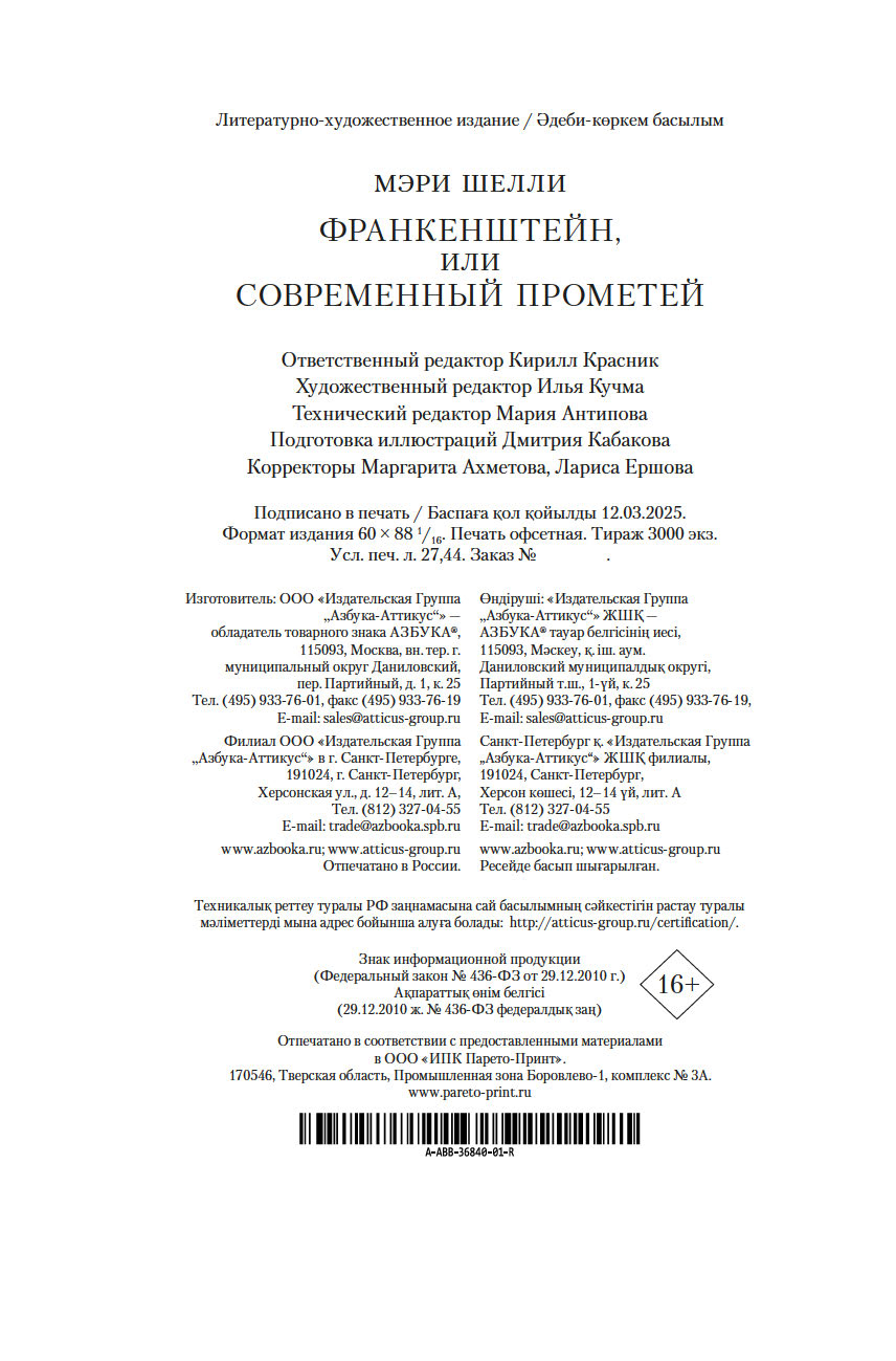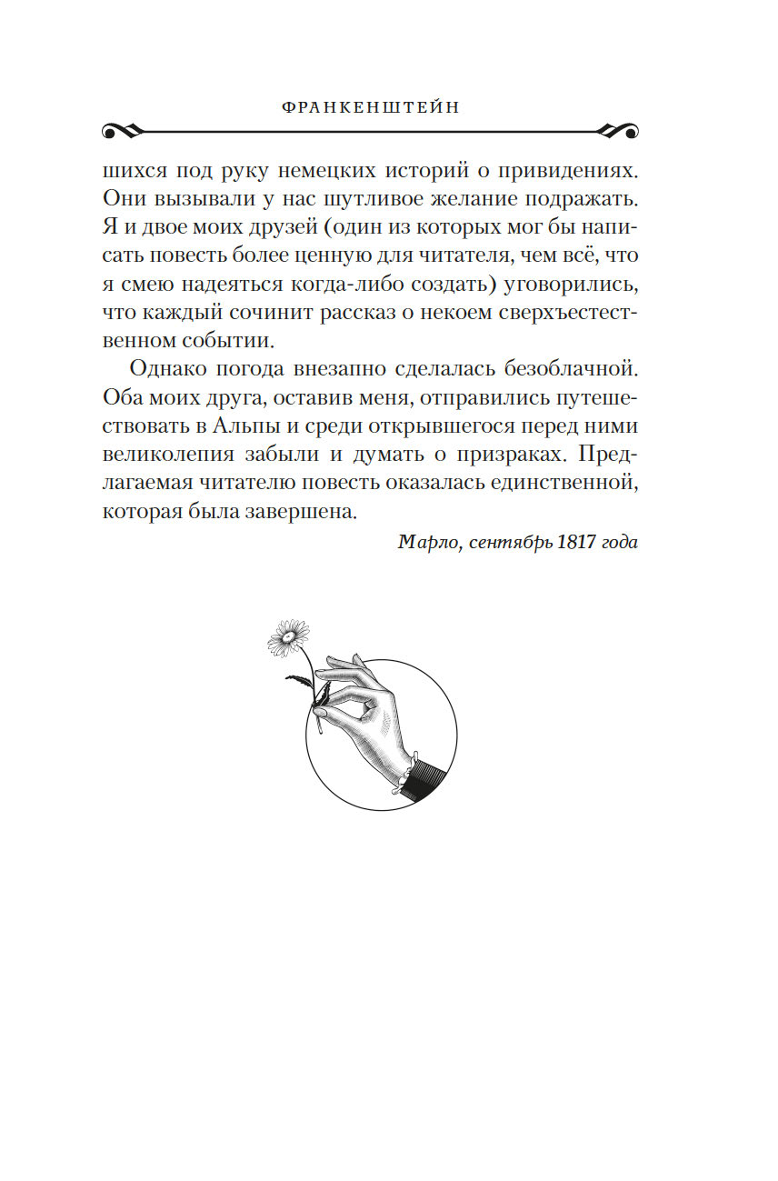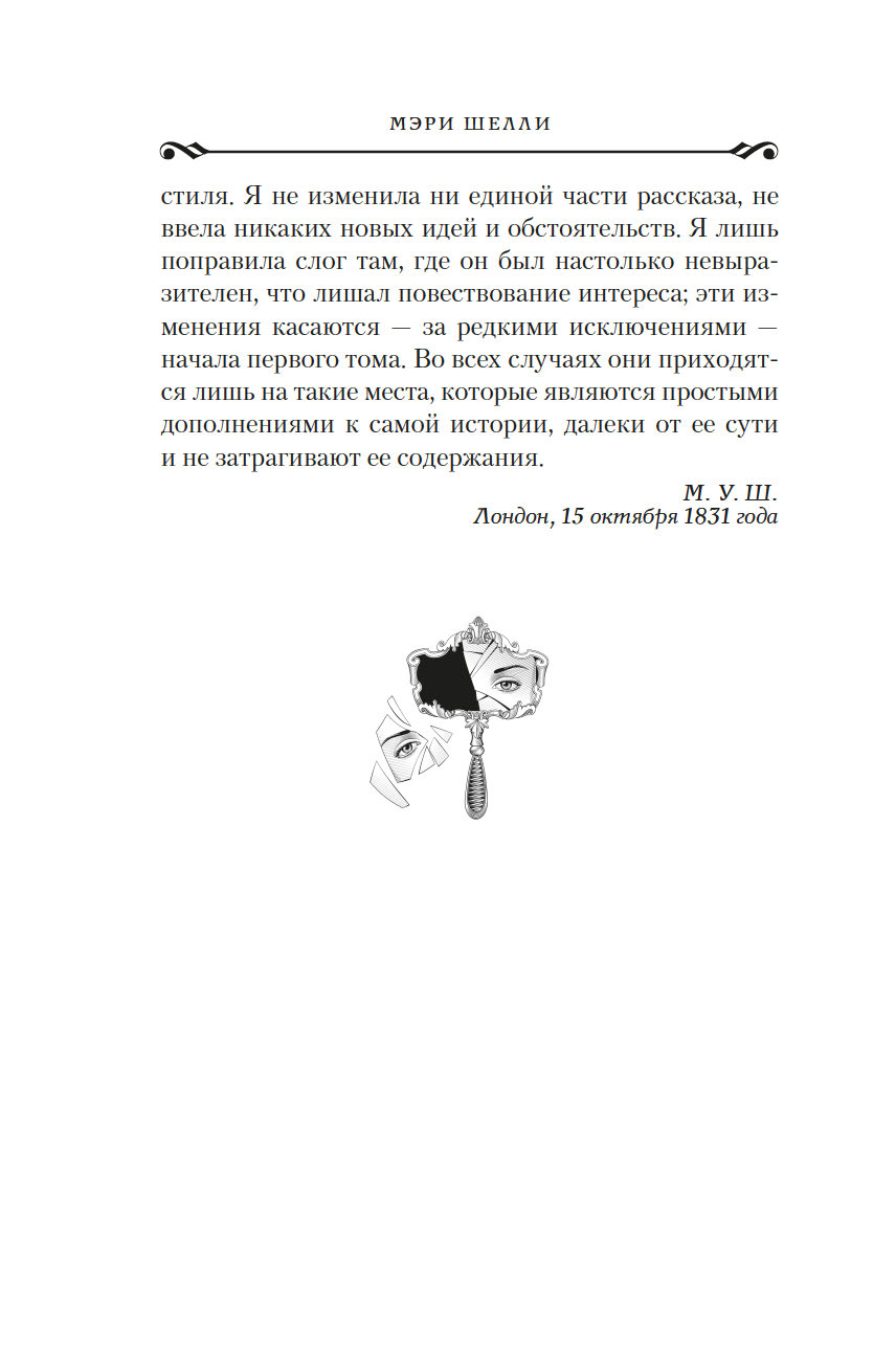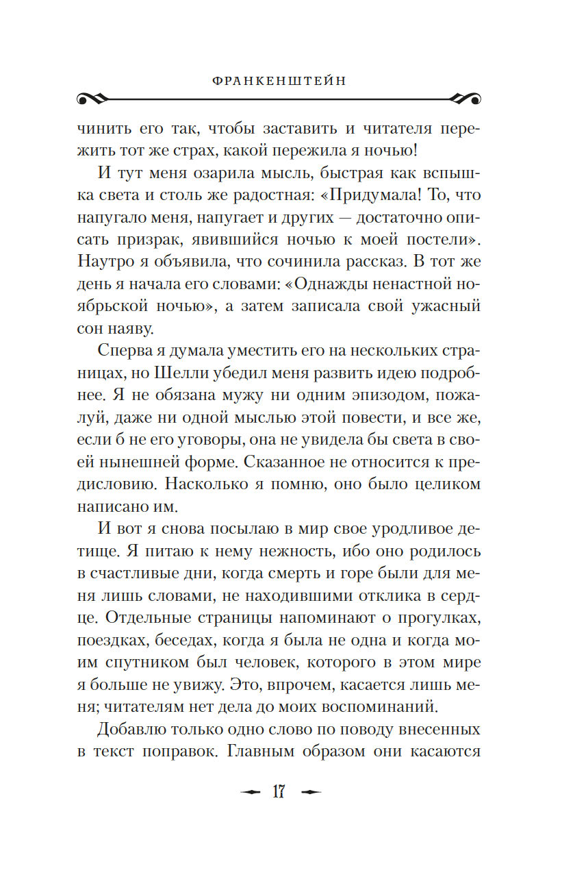 "Франкенштейн, или Современный Прометей" – роман удивительной судьбы. На момент его создания Мэри Шелли исполнилось всего 19 лет. Вскоре после публикации история ученого, сумевшего оживить жуткого монстра, обрела колоссальную популярность, стала классикой готической литературы и породила свою мифологию, существующую по сей день. В настоящее издание также вошла мистическая повесть "Превращение" и подробные комментарии.