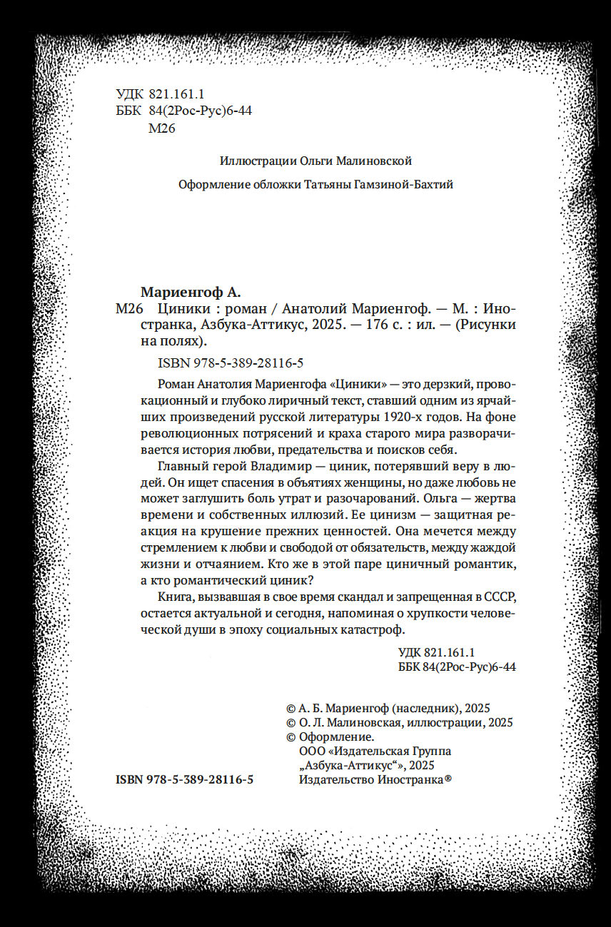 Роман Анатолия Мариенгофа "Циники" – это дерзкий, провокационный и глубоко лиричный текст, ставший одним из ярчайших произведений русской литературы 1920‑х годов. На фоне революционных потрясений и краха старого мира разворачивается история любви, предательства и поисков себя.