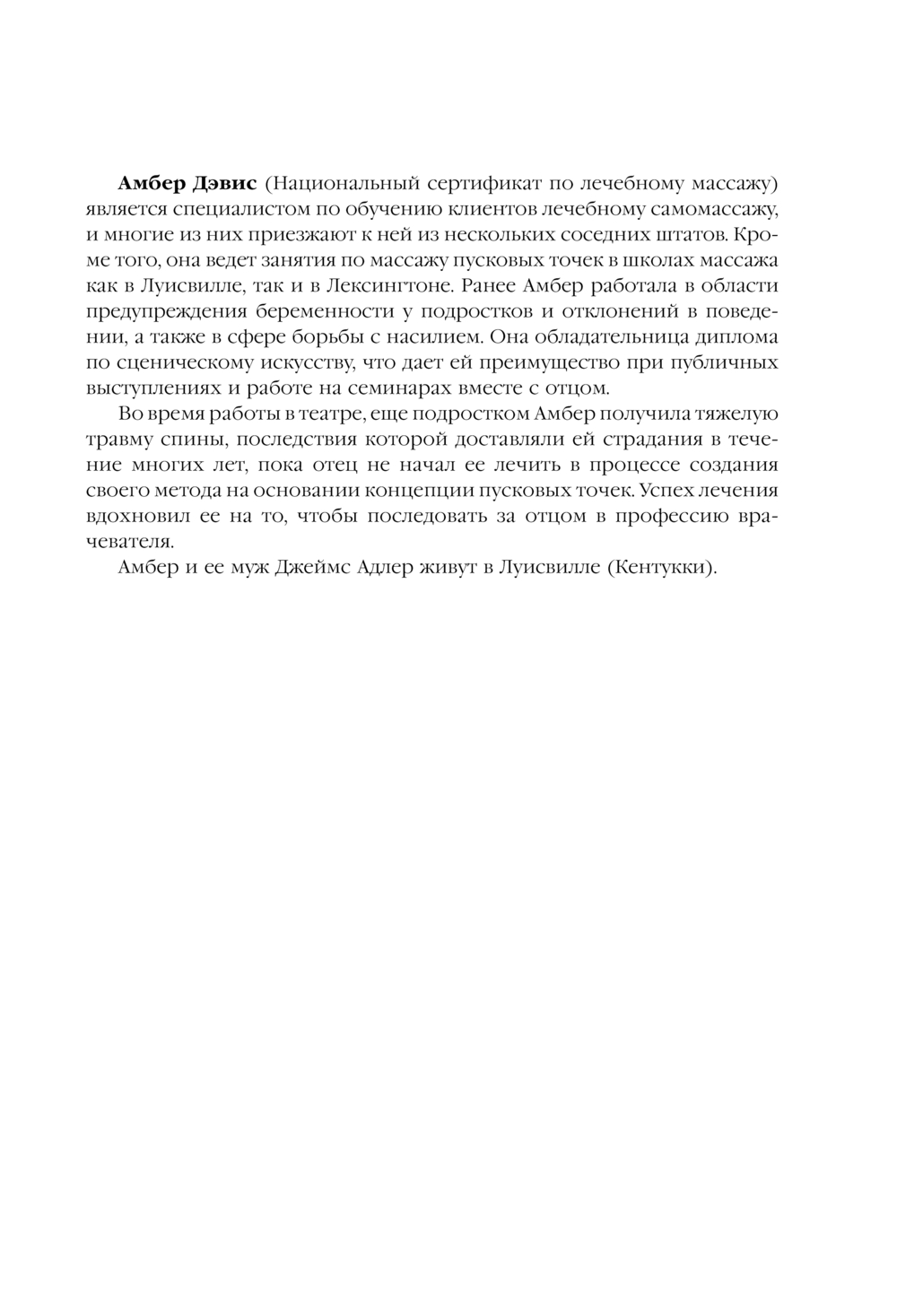 Врачи, мануальные терапевты, физиотерапевты и массажисты уже активно используют технику работы с триггерными точками для облегчения болей в мышцах и суставах. Методика работы включает в себя включает нанесение коротких повторяющихся массажных движений на триггерные зоны – крошечные узлы сокращения в мышечной ткани, где ограниченное кровообращение и недостаток кислорода вызывают боль. Массаж увеличивает кровообращение и насыщение кислородом в этой области и часто приносит мгновенное облегчение. В книге представлены различные методики работы, которые помогают облегчить состояние пациента, снизив уровень боли в травмированных зонах тела.