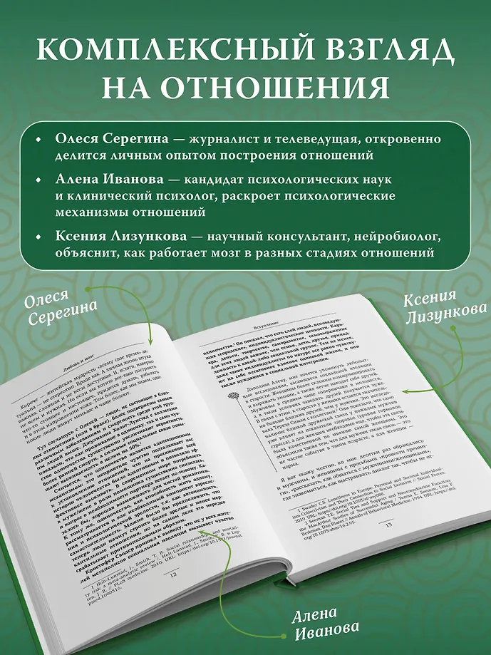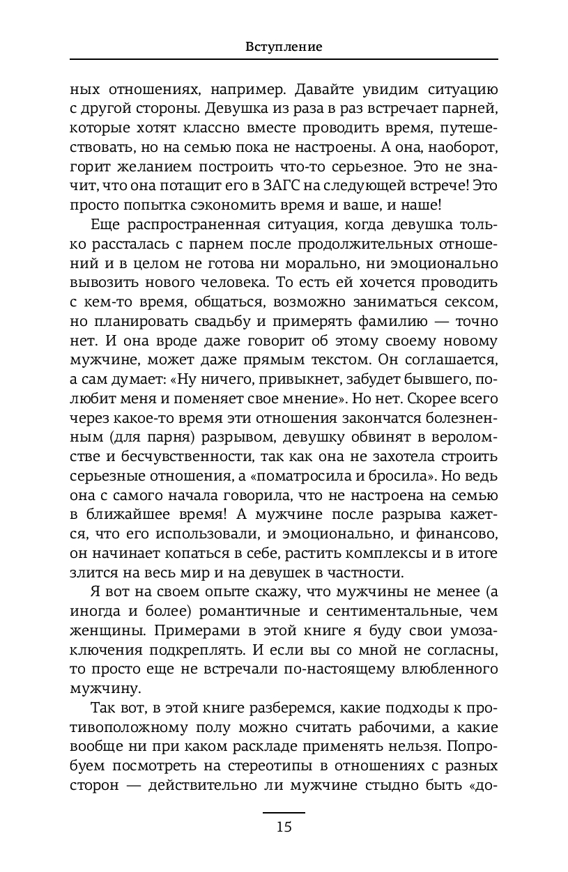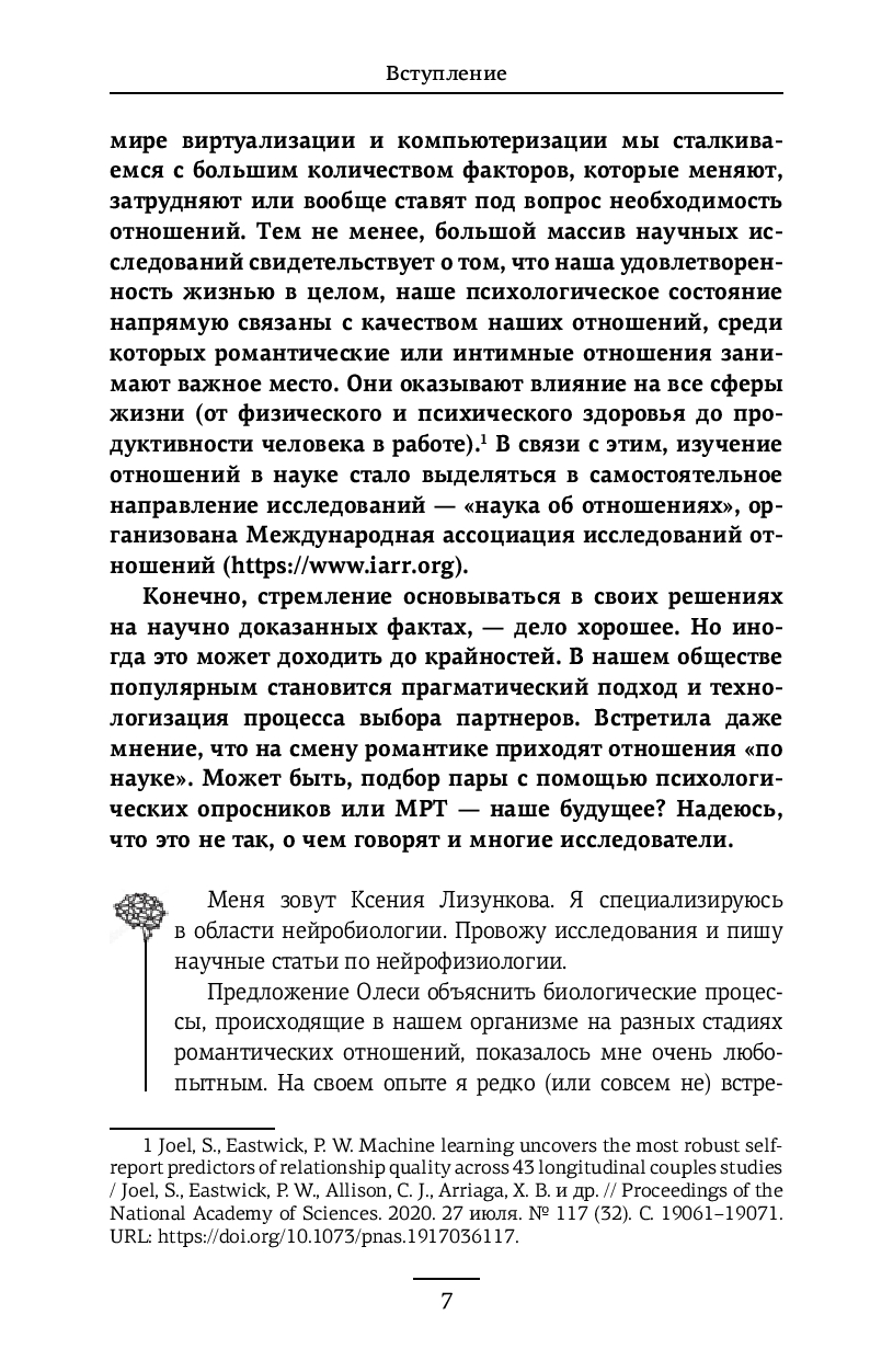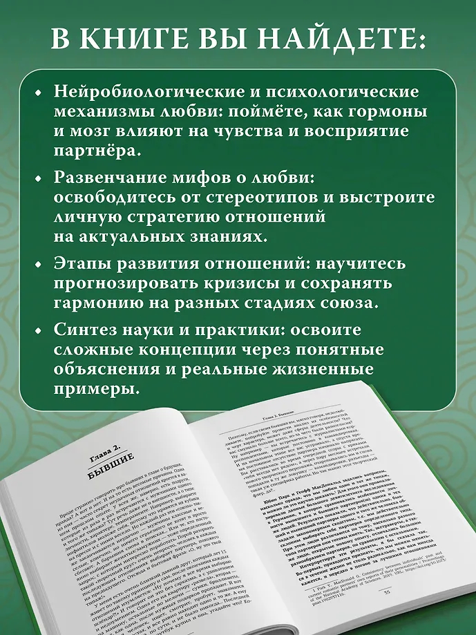 Вы узнаете о влиянии гормонов на влюбленность, почему спадают "розовые очки", как справиться с ревностью, общаться ли с бывшими, когда пора съезжаться и нужно ли варить борщи. Эта книга – не сборник готовых решений, а личный гид, помогающий понять отношения в их развитии, строить их осознанно и справляться с вызовами, не ограничивая себя стереотипами.
