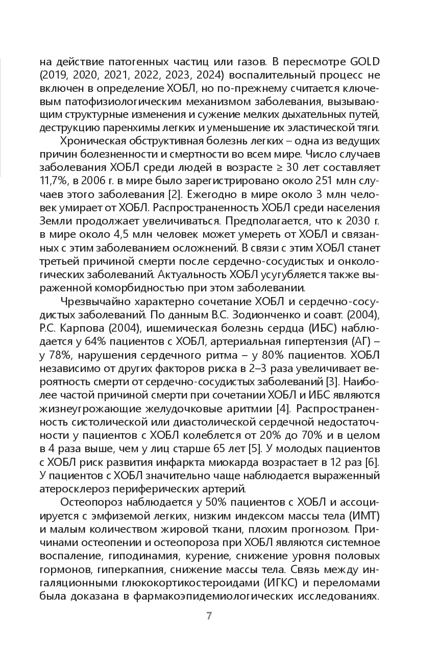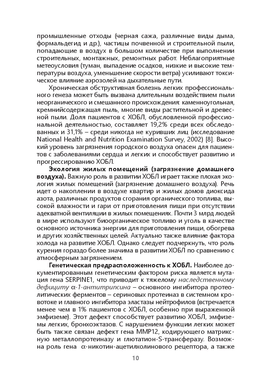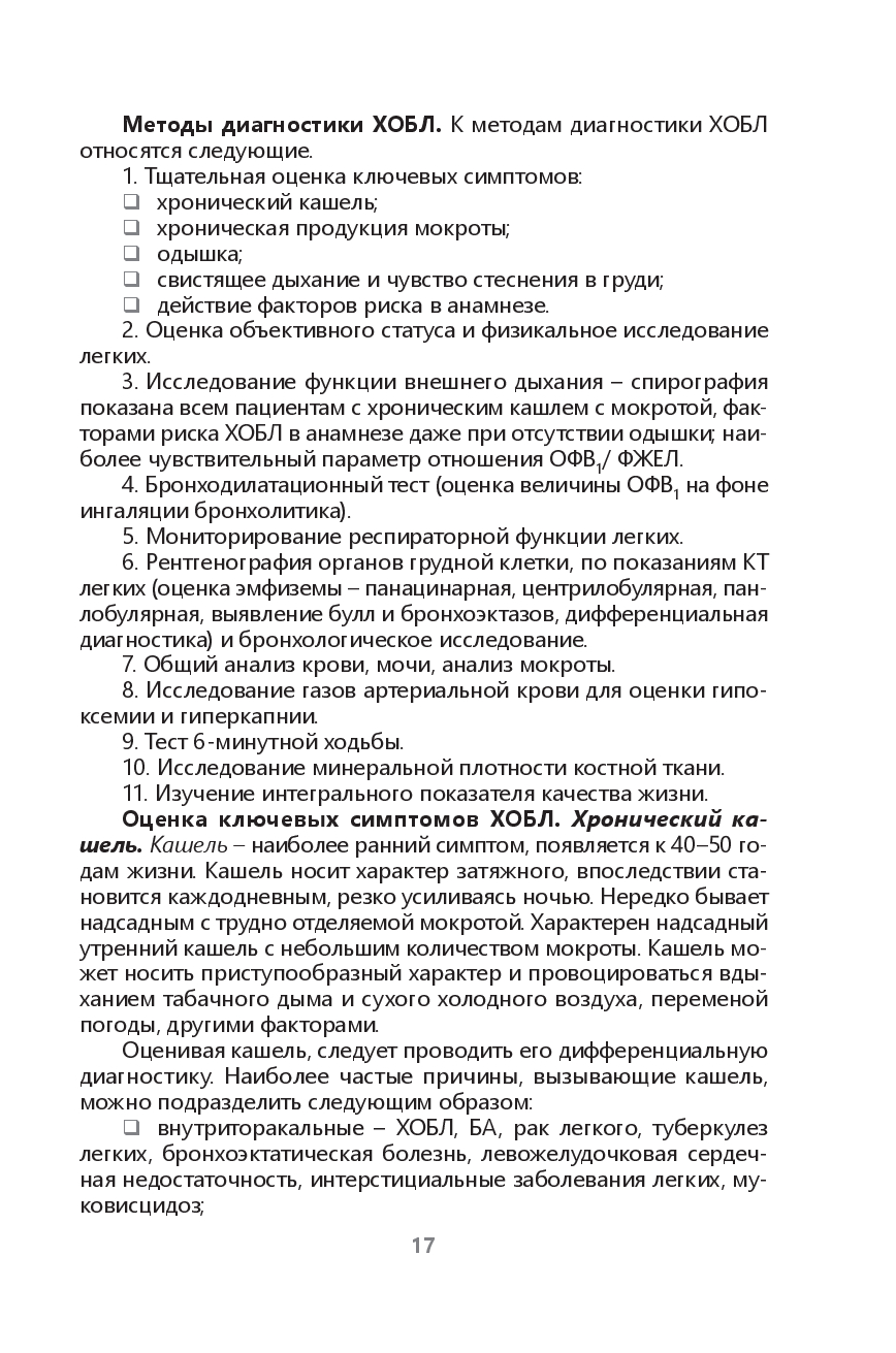 Освещены современные представления о клинической картине, диагностике и лечении хронической обструктивной болезни легких. Даны представления о медико-социальной значимости заболевания, об основных факторах риска его развития и ведущих звеньях патогенеза.