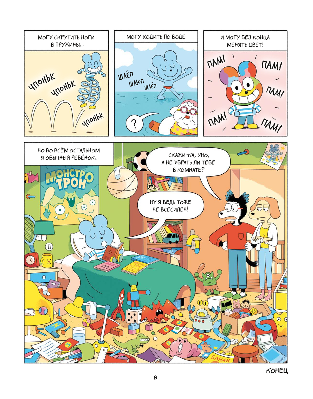 Кто самый находчивый зверёк на свете? Конечно, Уно! Он может растягиваться, ходить по воде и даже скручивать ноги в пружины. А ещё обладает супернюхом. Проказник Уно всегда готов прийти друзьям на помощь и рассмешить их, если те вдруг загрустят. Однако больше всего на свете он обожает придумывать разные шалости и разыгрывать окружающих.
