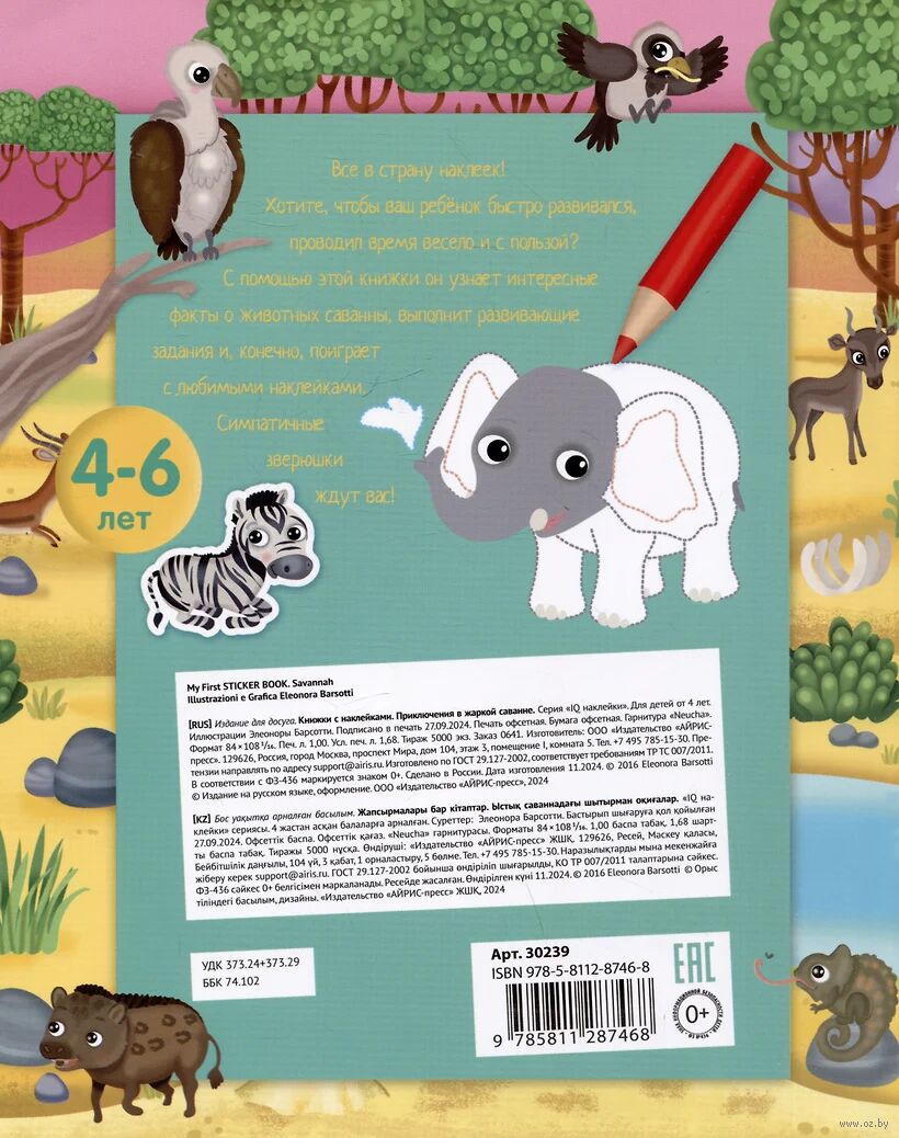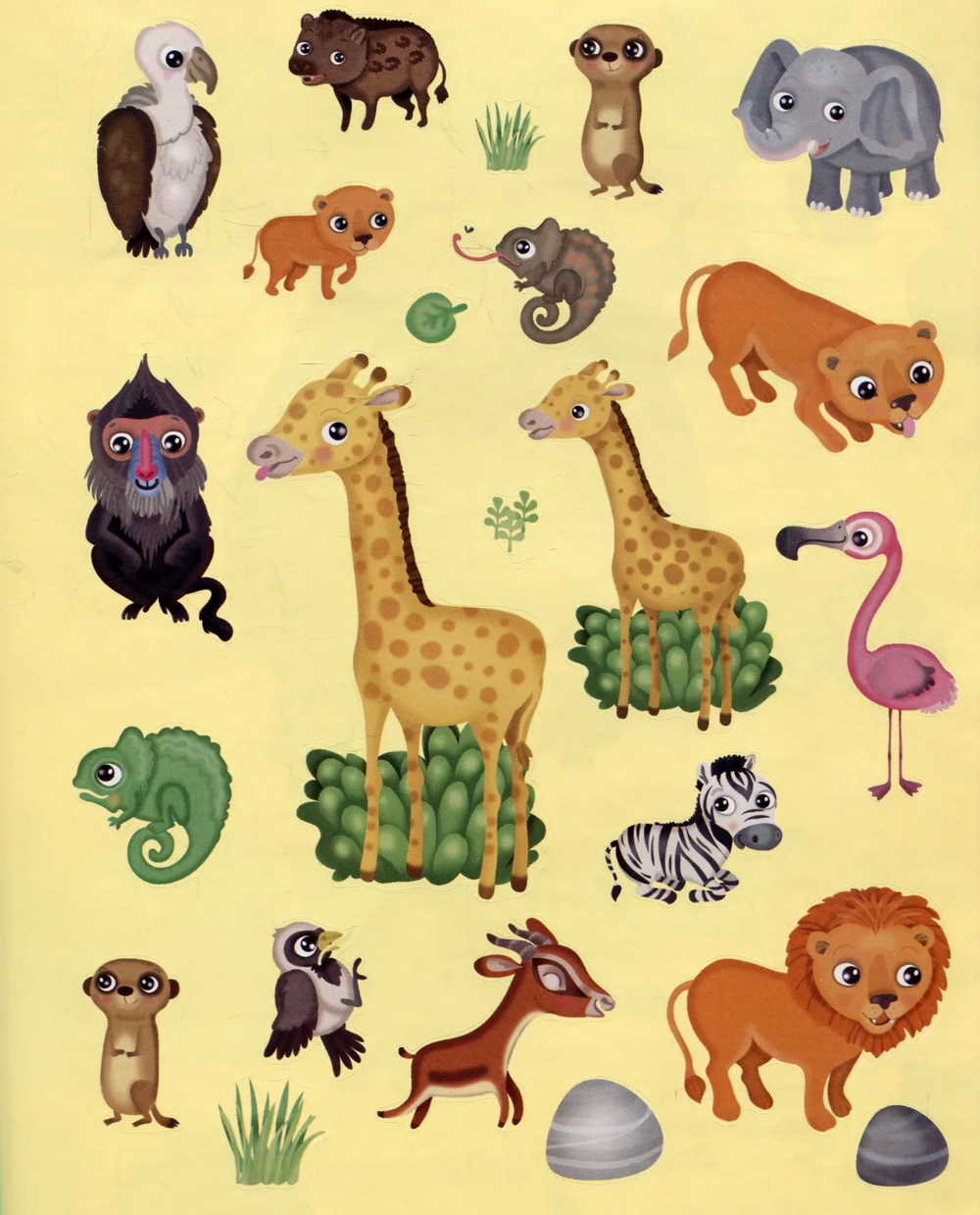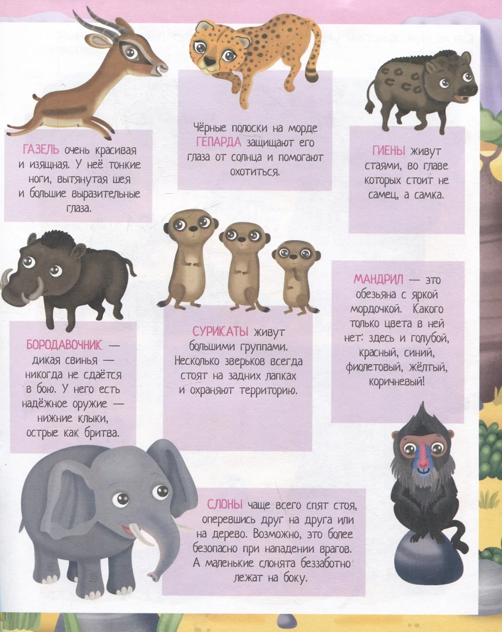 С помощью этой книжки ребёнок узнает много интересного о животных саванны. Выполняя игровые задания, он будет искать отличия в рисунках, проходить по запутанным лабиринтам, дорисовывать и раскрашивать картинки.