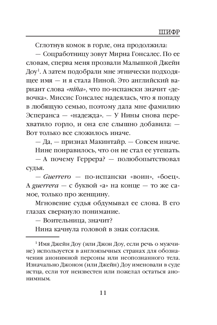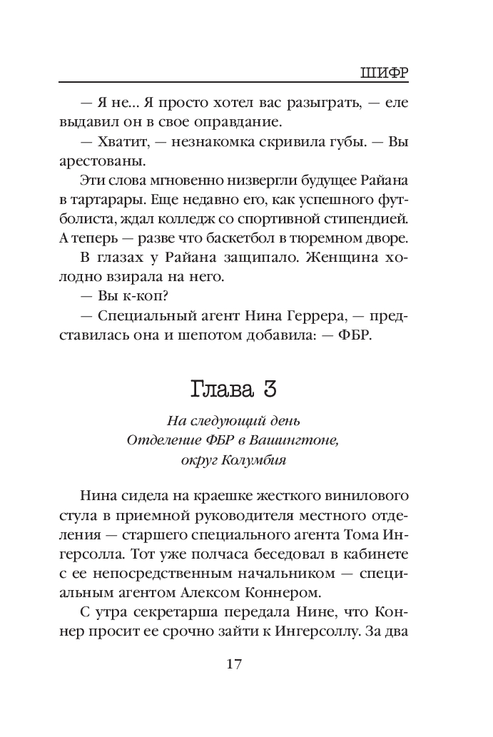 Все это адресовано одному человеку – специальному агенту ФБР Нине Геррере. И кулон этот когда-то принадлежал ей... Нина – единственная, кому удалось сбежать от загадочного серийного убийцы по прозвищу Шифр. А ведь тогда – одиннадцать лет назад – он собирался подарить этой девчонке роскошную смерть.