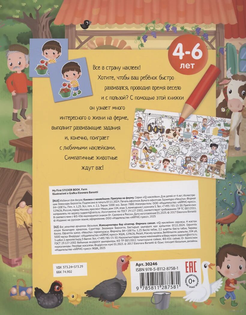 С помощью этой книжки ребёнок узнает много интересного о животных и растениях фермы. Выполняя игровые задания, он будет искать отличия в рисунках, проходить по запутанным лабиринтам, дорисовывать и раскрашивать картинки.