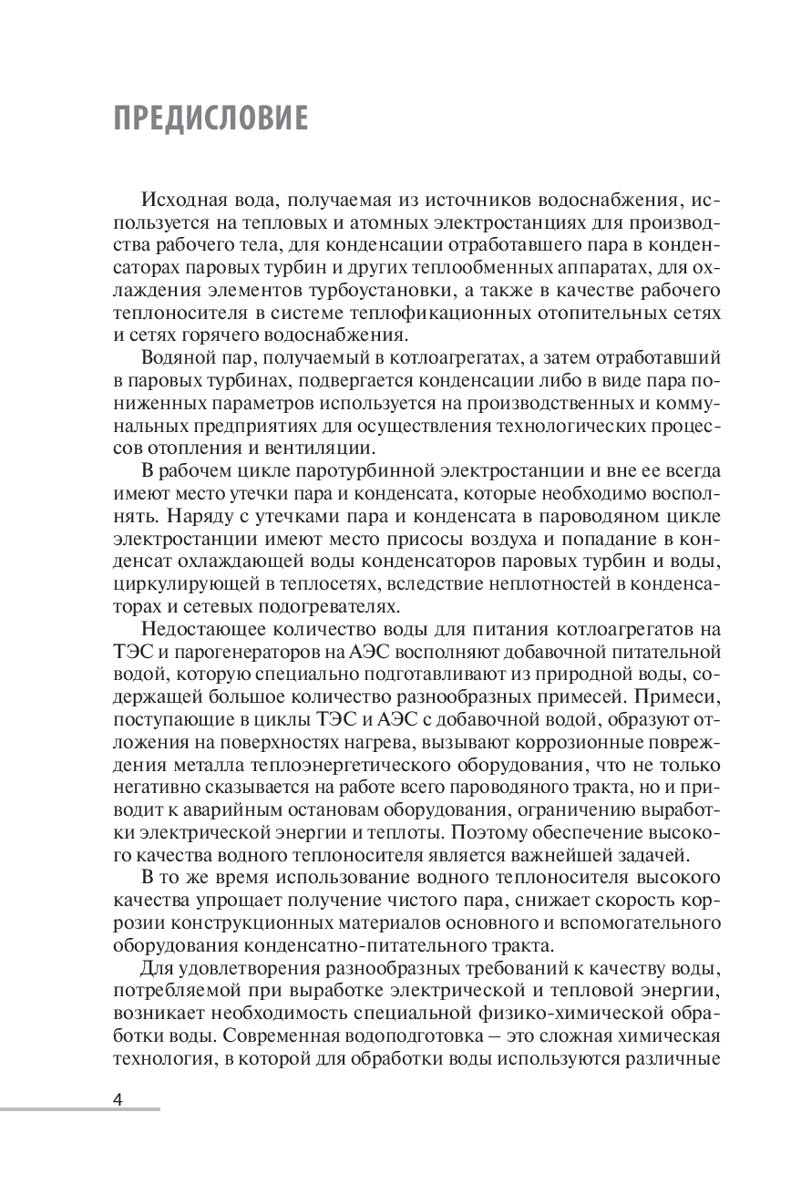 Учебное пособие состоит из двух частей. Первая часть посвящена вопросам теории водоподготовки, водно-химическим режимам ТЭС и АЭС, физико-химическим основам процессов очистки воды, вторая часть – проектированию водоподготовительных установок, выбору водно-химических режимов, выбору или расчету системы технического водоснабжения. В пособии описаны современные физические и химические методы обработки воды, используемой в теплоэнергетике, важные при изучении процессов, протекающих на тепловых и атомных станциях.