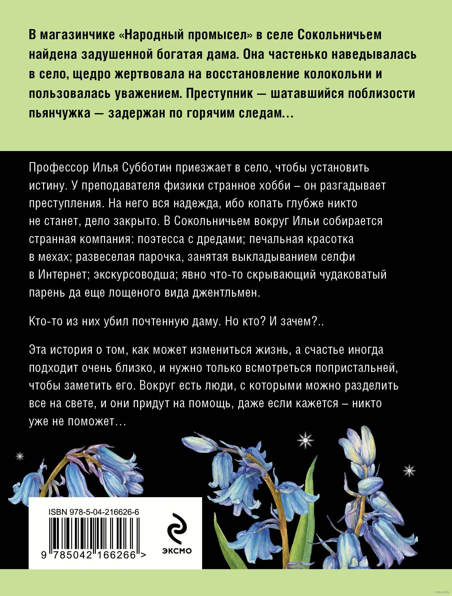 В магазинчике "Народный промысел" в селе Сокольничьем найдена задушенной богатая дама. Она частенько наведывалась в село, щедро жертвовала на восстановление колокольни и пользовалась уважением. Преступник – шатавшийся поблизости пьянчужка – задержан по горячим следам... Профессор Илья Субботин приезжает в село, чтобы установить истину. У преподавателя физики странное хобби – он разгадывает преступления. На него вся надежда, ибо копать глубже никто не станет, дело закрыто. В Сокольничьем вокруг Ильи собирается странная компания: поэтесса с дредами; печальная красотка в мехах; развеселая парочка, занятая выкладыванием селфи в Интернет; экскурсоводша; явно что-то скрывающий чудаковатый парень; да еще лощеного вида джентльмен.