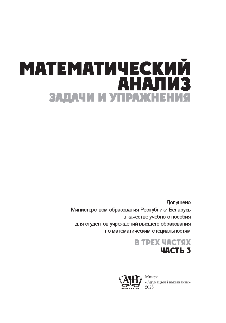 Излагается материал для практических и лабораторных занятий по дисциплине ѕМатематический анализї, изучаемой на математических специальностях учреждений высшего образования Республики Беларусь. Приводятся также краткие теоретические сведения по математическому анализу, необходимые для решения задач. В части 3 пособия рассмотрены темы "Интегралы, зависящие от параметра", "Интеграл Римана в Rd", "Криволинейные интегралы", "Поверхностные интегралы и теория поля".
