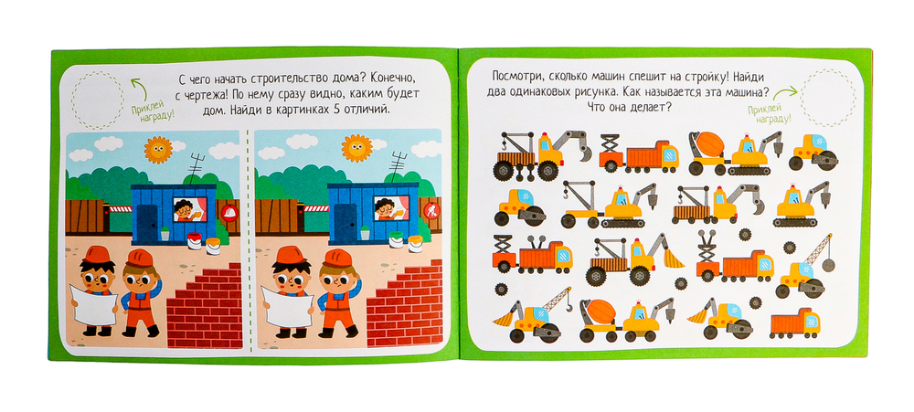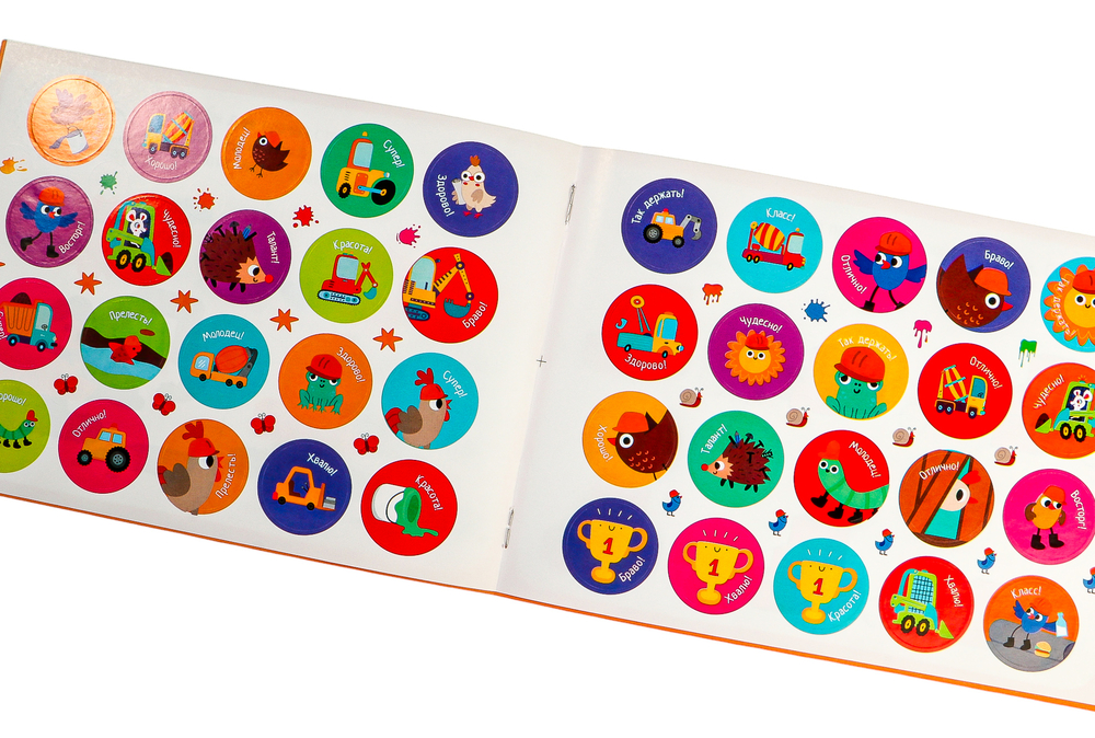 Пособие включает в себя 70 наклеек и весёлые задания для развития мышления. Ребёнка ждут запутанные лабиринты, игры с буквами, картинки с отличиями, пазлы, раскраски. За каждое выполненное задание ребёнок получает награду – яркую наклейку. Он сам выбирает понравившуюся картинку и приклеивает на страничку.