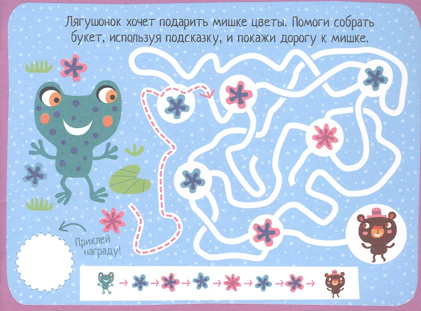 Пособие включает в себя 70 наклеек и весёлые задания для тренировки мышления. Ребёнка ждут запутанные лабиринты, игры с цифрами, картинки с отличиями, магические квадраты, раскраски. За каждое выполненное задание ребёнок получает награду – яркую наклейку. Он сам выбирает понравившуюся картинку и приклеивает на страничку.