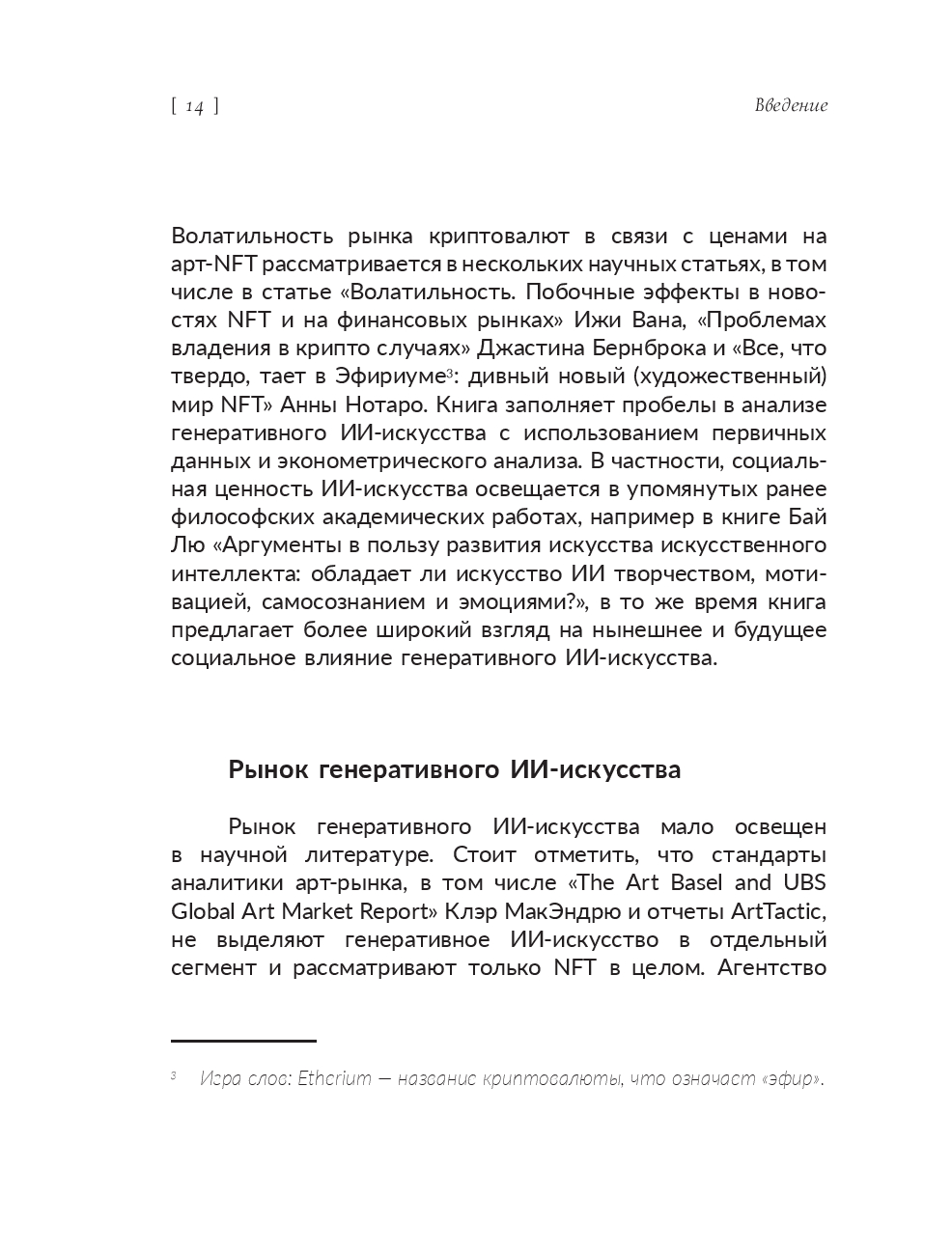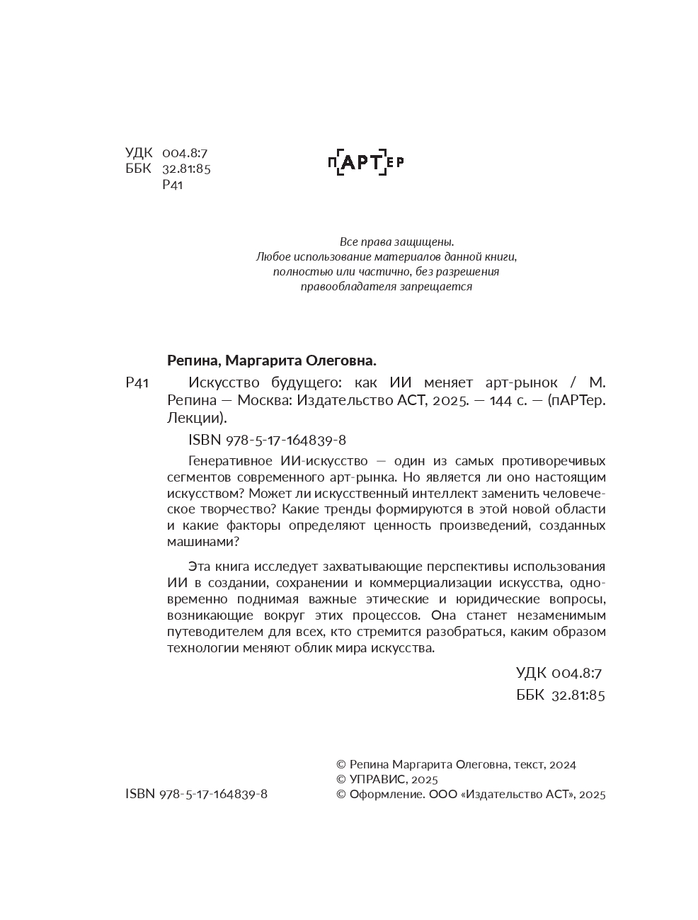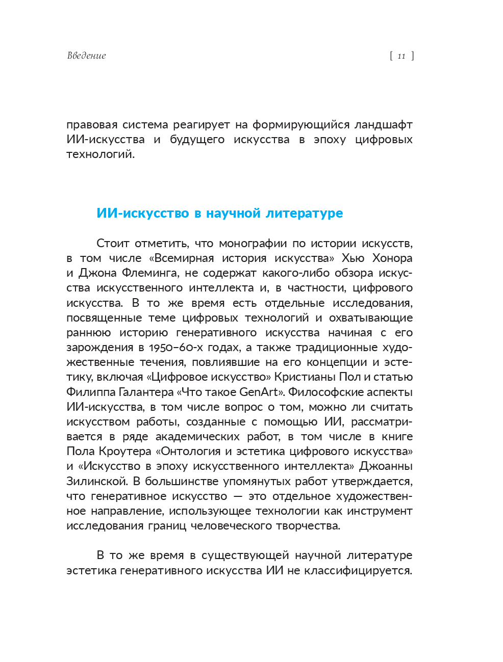 Эта книга исследует захватывающие перспективы использования ИИ в создании, сохранении и коммерциализации искусства, одновременно поднимая важные этические и юридические вопросы, возникающие вокруг этих процессов. Она станет незаменимым путеводителем для всех, кто стремится разобраться, каким образом технологии меняют облик мира искусства.