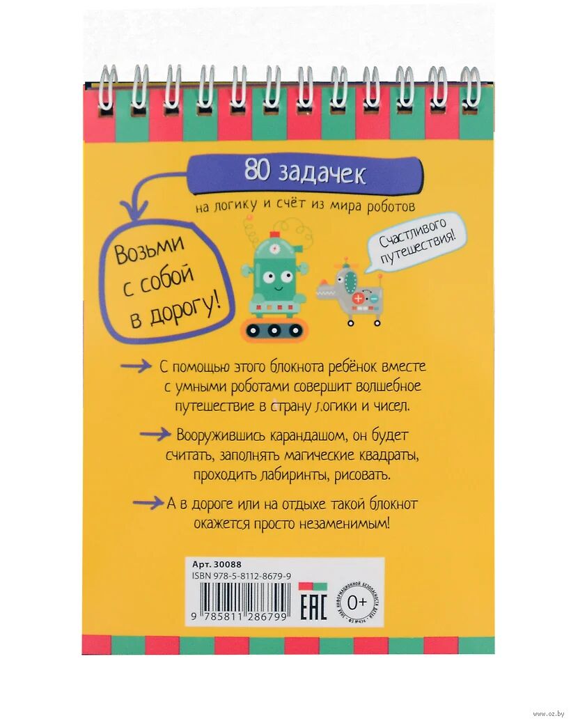 С помощью этого блокнота ребенок вместе с умными роботами совершит волшебное путешествие в страну логики и чисел.