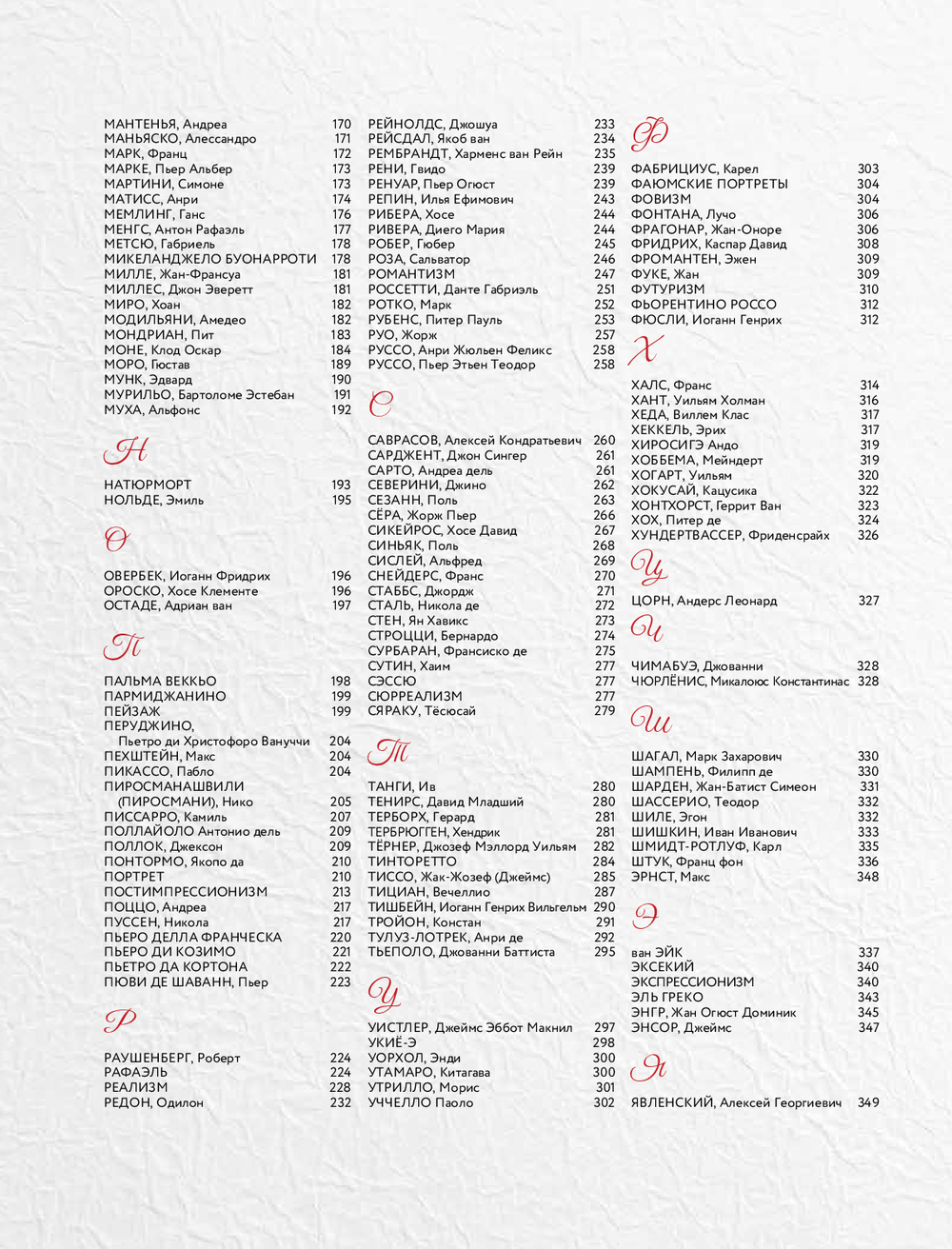Историк, искусствовед, преподаватель и автор книг Александра Жукова собрала на страницах этого издания огромный материал об известных художниках, о ключевых направлениях и о жанрах, снабдив его более 450 картинами, являющимися достоянием мировой культуры. Книгу можно читать с любого места: для удобства статьи представлены в алфавитном порядке.