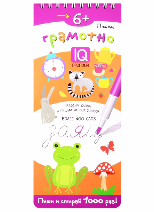 Многоразовые иллюстрированные прописи помогут ребёнку освоить грамотное написание словарных слов, слов с безударными гласными, с двойными согласными, с парными и непроизносимыми согласными. Благодаря специально подобранным заданиям и непринуждённой тренировке ребёнок научится легко преодолевать ошибкоопасные места в словах. Причем в этих прописях можно писать и стирать много раз, не боясь сделать ошибку. В процессе работы с прописями у ребёнка формируется красивый почерк, развивается словарный запас (в прописях дано несколько сотен слов), грамотная речь и мелкая моторика.
