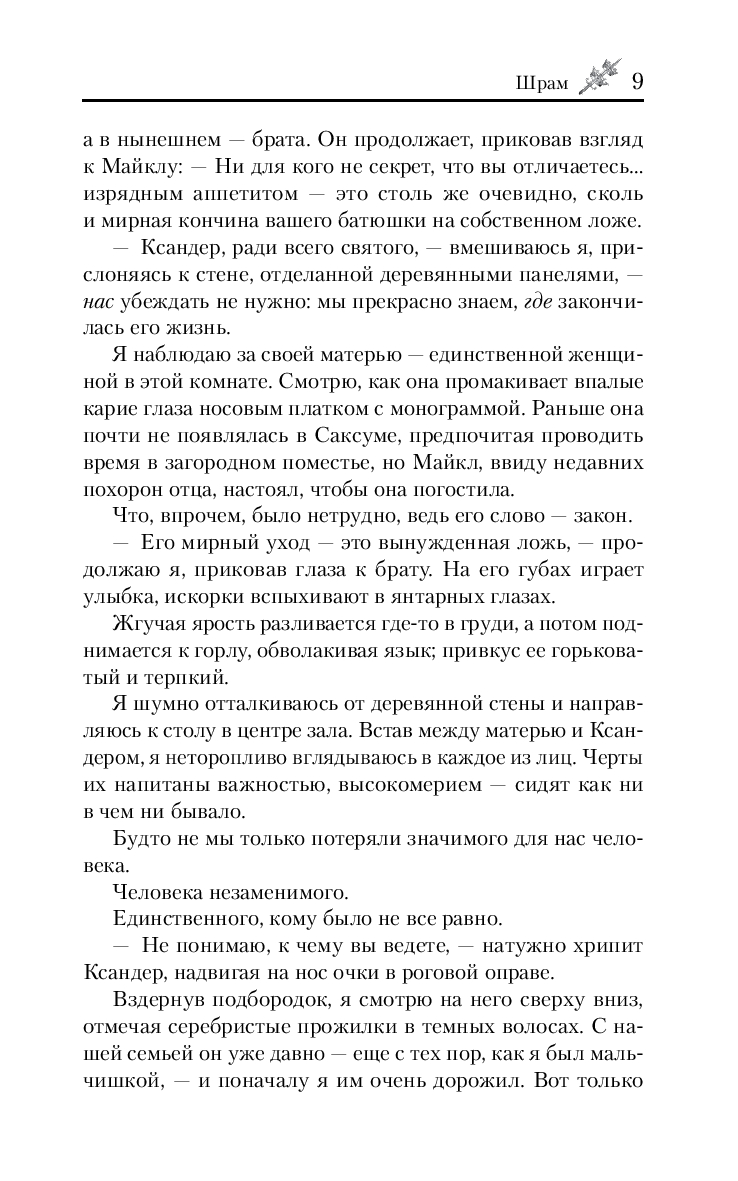 У Сары есть план. Выйти замуж за короля и искоренить род Фааса, даже рискуя собственной жизнью. Но она никак не ожидает познакомиться со Шрамом. Он опасен. И один из тех , кого ей поручили убить. Но грань между ненавистью и страстью никогда не казалась такой тонкой, и Сара перестает понимать, кому она может доверять, и разрывается между местью и злодеем, которого она никогда не должна полюбить.