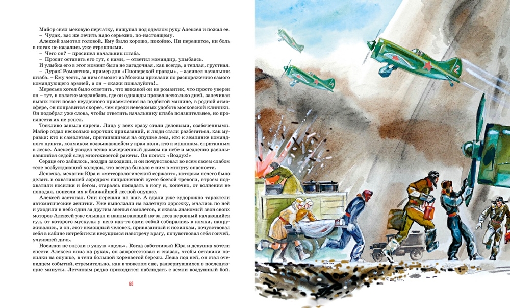 "Повесть о настоящем человеке" – подлинная история, основанная на подвиге советского лётчика-аса Алексея Маресьева. Сбитый в воздушном бою и потерявший обе ноги, он не пал духом и ценой невероятных усилий вернулся за штурвалом самолёта, подтвердив своё умение пилота-истребителя. Эта книга не просто о легендарном подвиге советского офицера – она о силе духа и характера, об отваге и самоотверженности, о воле к победе и любви к Родине. Повесть переведена на многие языки мира, а также легла в основу сюжета художественного фильма.