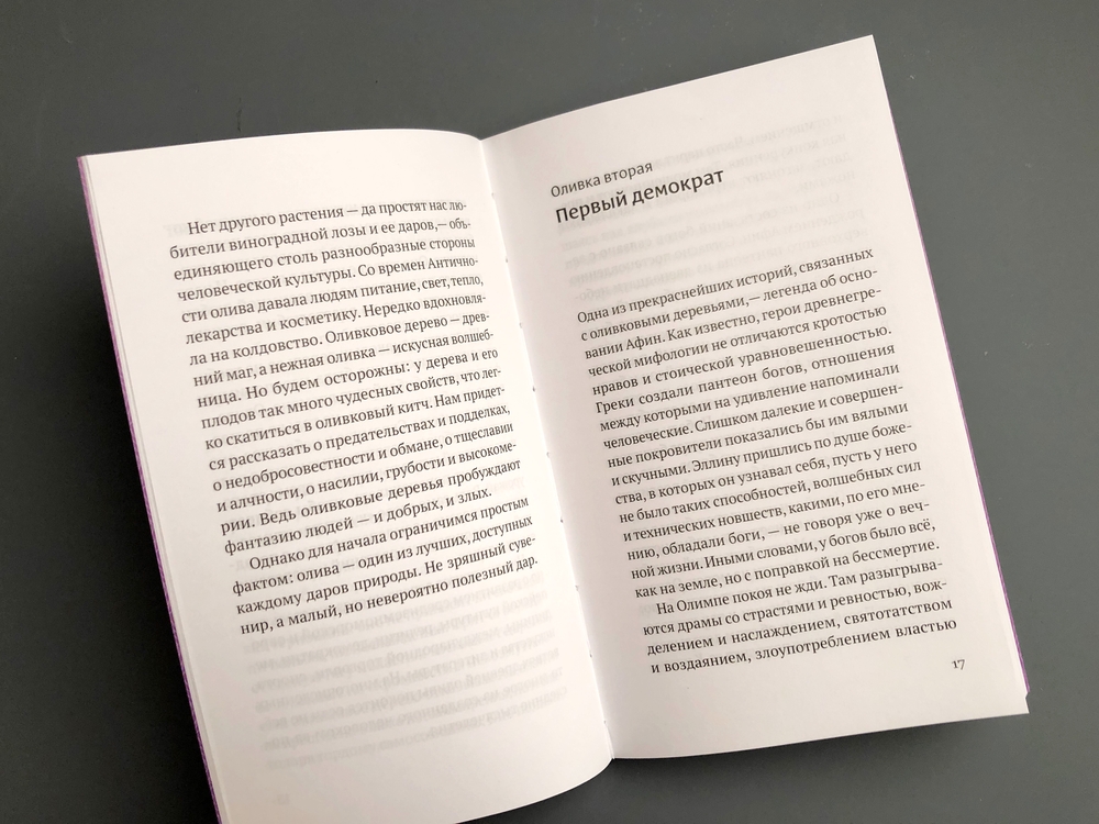 Древнеримский писатель и агроном в труде по сельскому хозяйству заметил: "Олива – первая среди всех деревьев". С античных времен она давала людям питание, свет, тепло, лекарства, косметические средства и служила неиссякаемым источником вдохновения. В двадцати главах – двух символичных пригоршнях оливок – швейцарский филолог, поэт и эссеист Ральф Дутли рассказывает о тысячелетиях захватывающей культурной истории удивительного дерева, о его роли в магических обрядах, литературе, искусстве, военных конфликтах и мировой экономике.