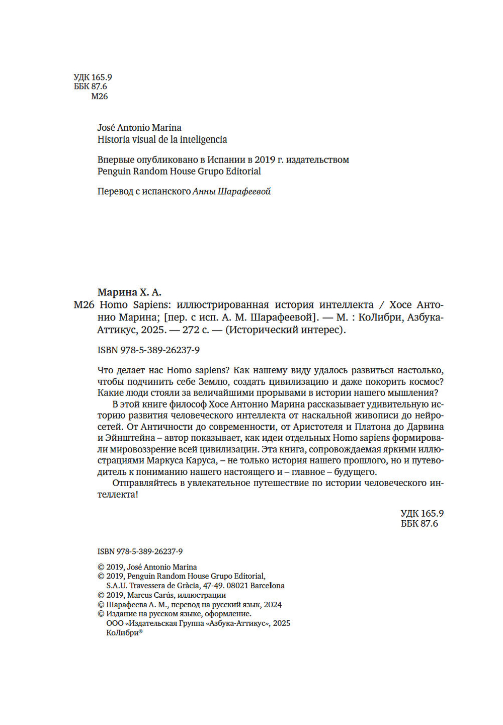 Какие люди стояли за величайшими прорывами в истории нашего мышления? В этой книге философ Хосе Антонио Марина рассказывает удивительную историю развития человеческого интеллекта от наскальной живописи до нейросетей. От Античности до современности, от Аристотеля и Платона до Дарвина и Эйнштейна – автор показывает, как идеи отдельных Homo sapiens формировали мировоззрение всей цивилизации. Эта книга, сопровождаемая яркими иллюстрациями Маркуса Каруса, – не только история нашего прошлого, но и путеводитель к пониманию нашего настоящего и – главное – будущего.