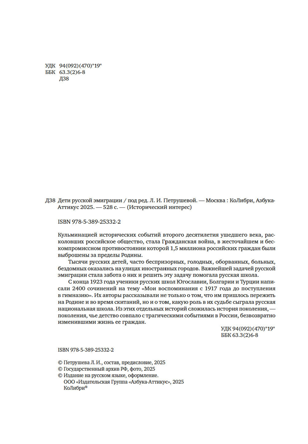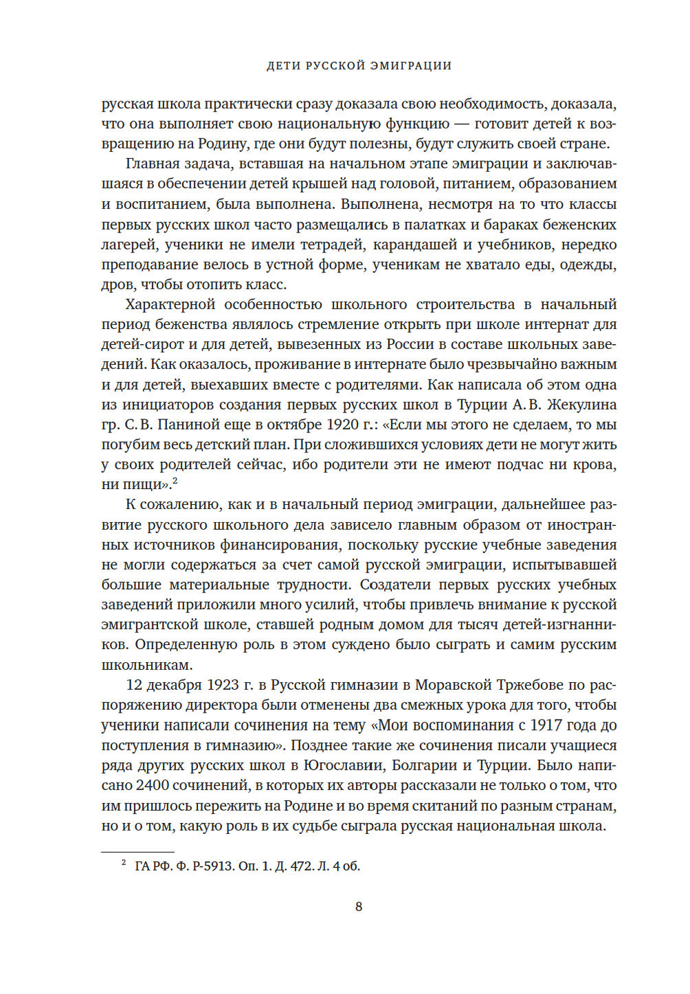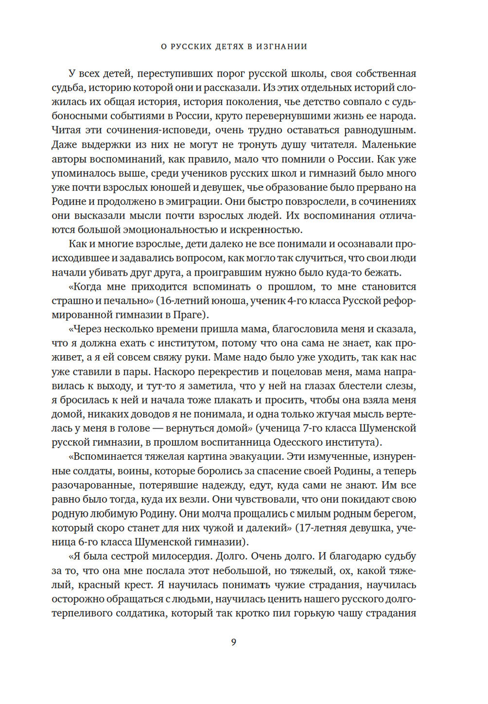 С конца 1923 года ученики русских школ Югославии, Болгарии и Турции написали 2400 сочинений на тему "Мои воспоминания с 1917 года до поступления в гимназию". Их авторы рассказывали не только о том, что им пришлось пережить на Родине и во время скитаний, но и о том, какую роль в их судьбе сыграла русская национальная школа. Из этих отдельных историй сложилась история поколения, – поколения, чье детство совпало с трагическими событиями в России, безвозвратно изменившими жизнь ее граждан.