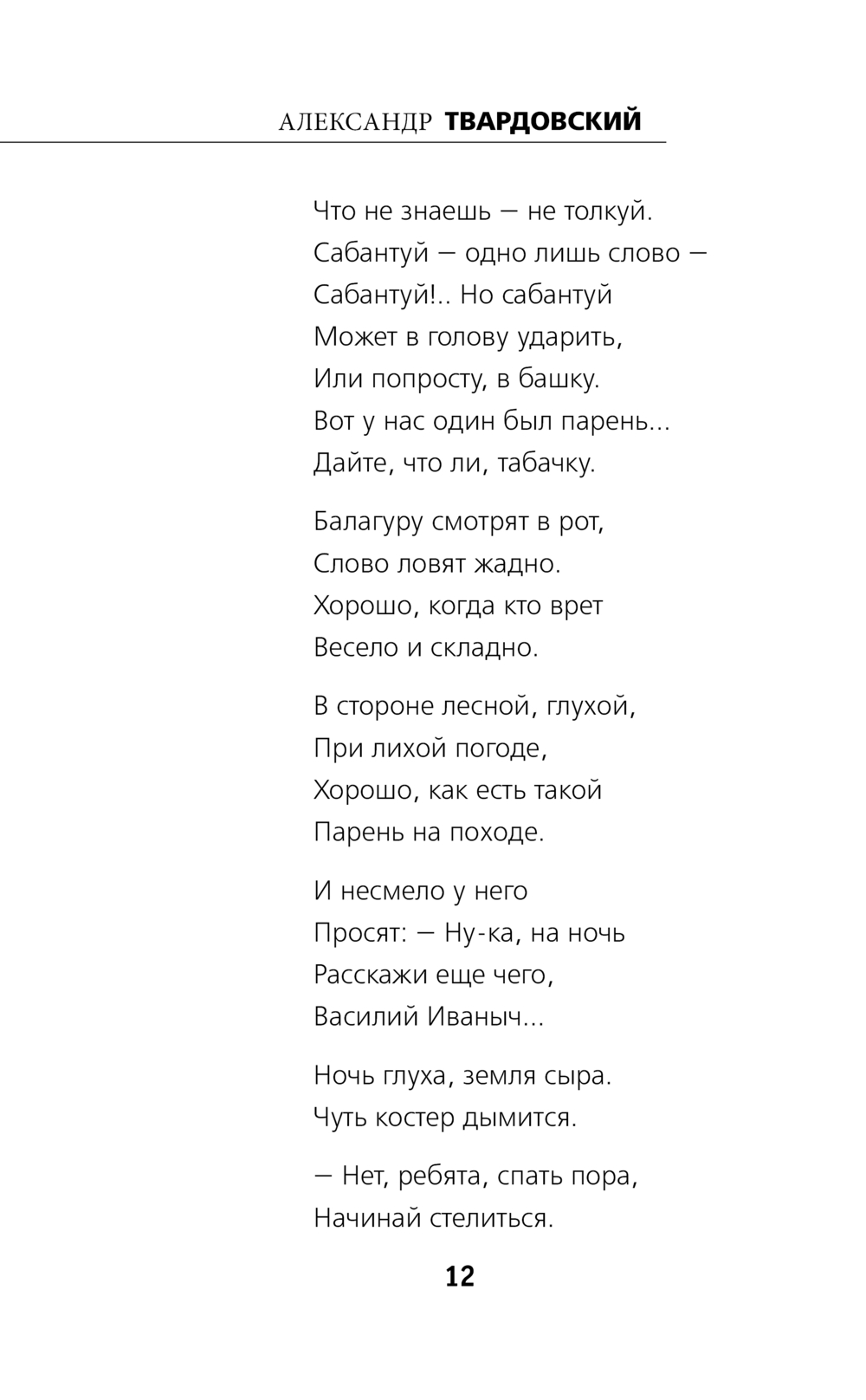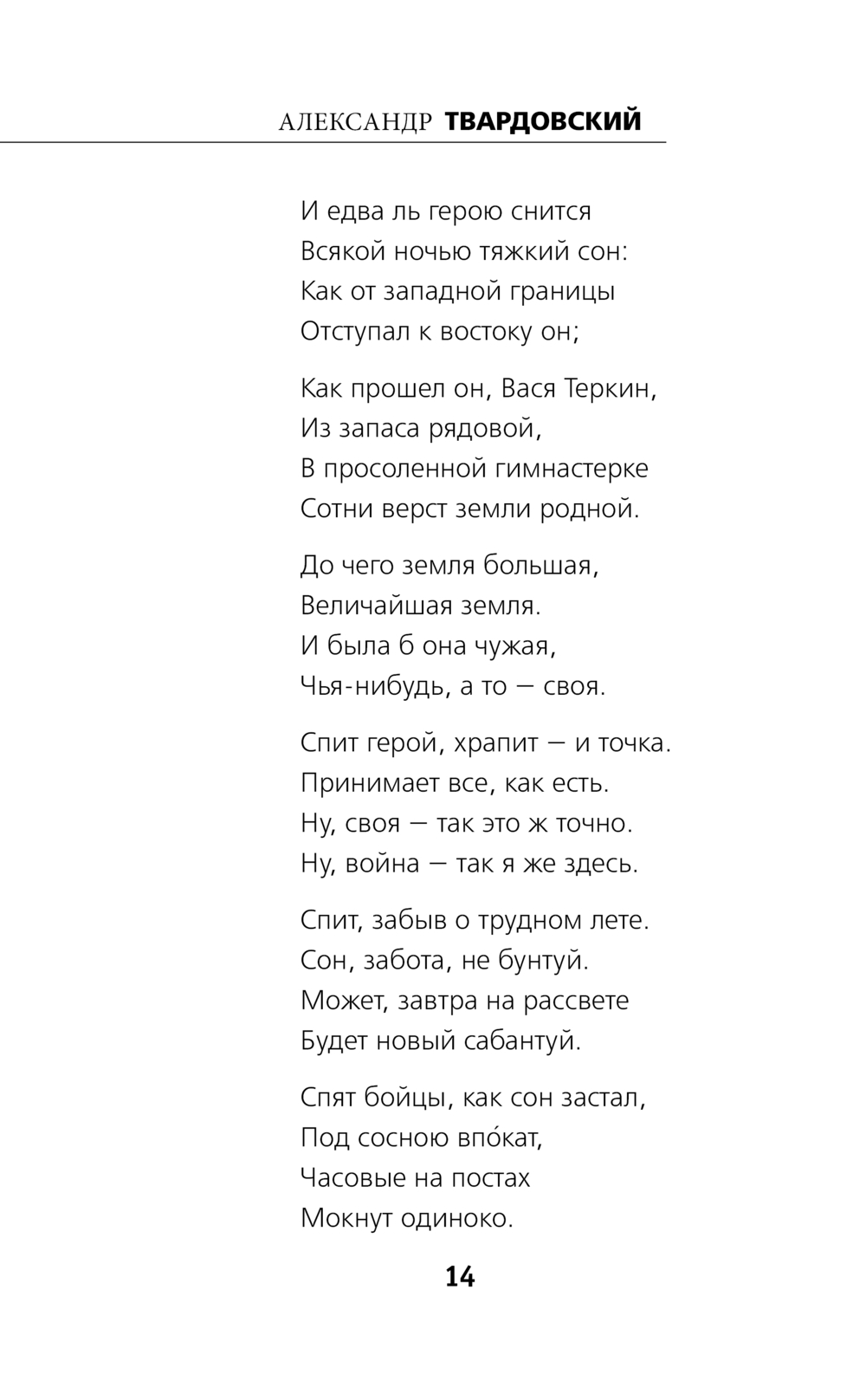 Александр Твардовский (1910-1971) на себе испытал тяжесть фронтовых будней, пройдя в качестве военного корреспондента две войны – советско-финскую и Великую Отечественную. Поэтому Александр Трифонович смог так точно описать русского воина – смекалистого и находчивого, ловкого и умелого, отважного и человечного. И одновременно рассказать страшную правду о войне. Поэма сразу же стала известной, и не просто известной – отдельные главы прозвучали по радио, солдаты заучивали отрывки наизусть и читали на привалах, бережно передавали друг другу вырезки из газет. "Василий Теркин" – одна из самых правдивых и жизнеутверждающих книг о войне, по праву вошедшая в золотой фонд отечественной литературы.
