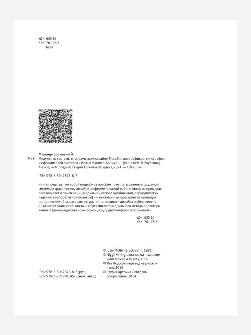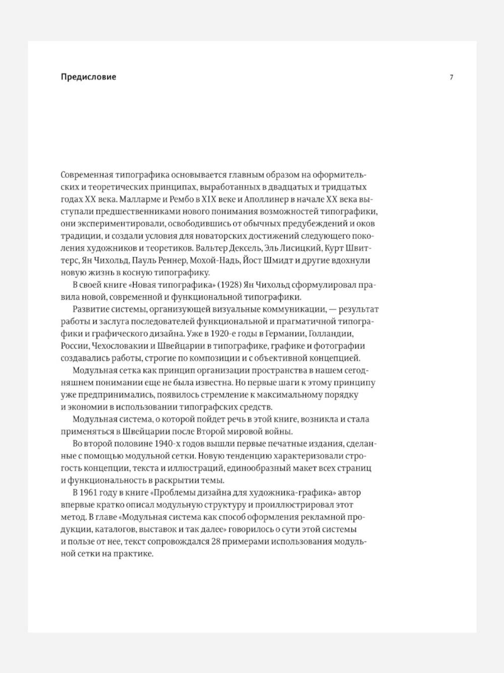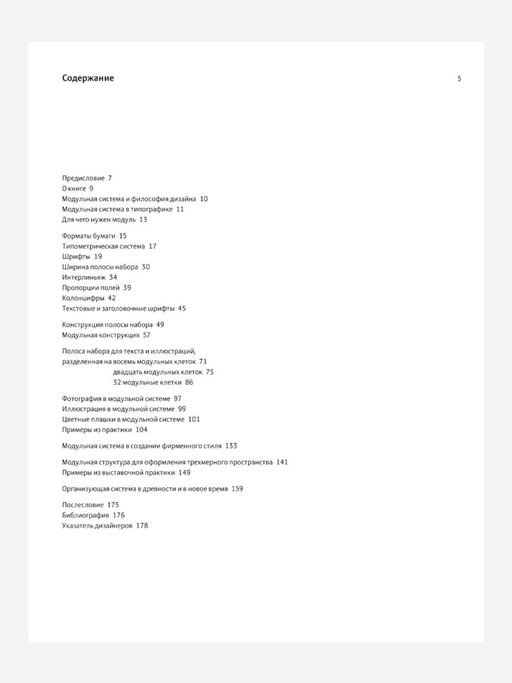 Книга представляет собой подробное пособие по использованию модульной системы в графическом дизайне и оформительской работе. Автор на примерах рассказывает о применении модульной сетки в дизайне книг, периодических изданий, корпоративной полиграфии, выставочных пространств, приводит исторические образцы архитектуры, типографики и дизайна и убедительно доказывает универсальность и эффективность модульного метода проектирования.