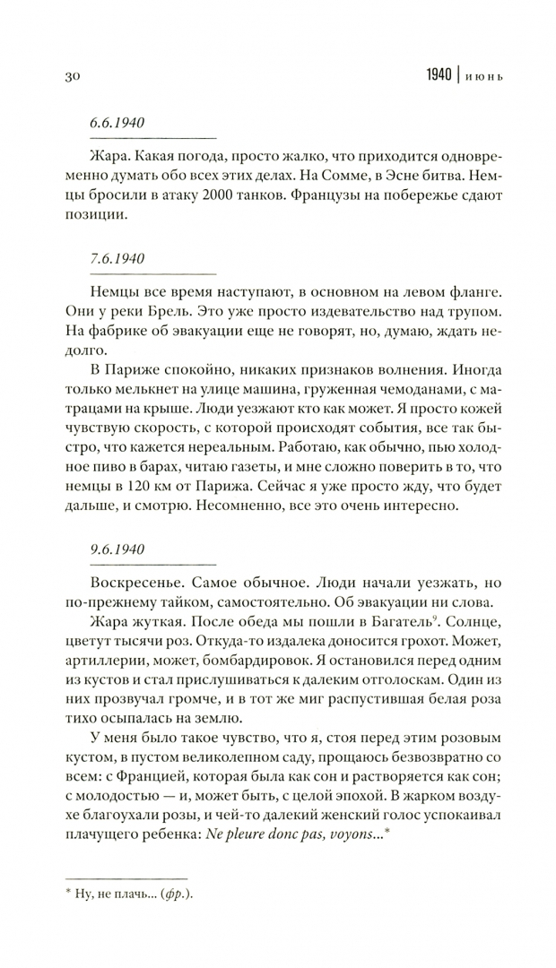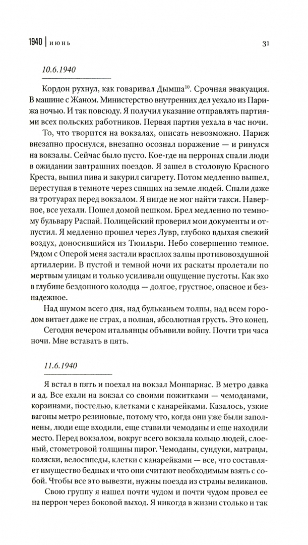 Дневник четырех военных лет, проведенных автором во Франции, стал одной из главных польских книг XX века. В нем Бобковский фиксировал развитие военных событий и в катастрофическом ключе диагностировал европейский кризис, обнаружив изрядную проницательность.