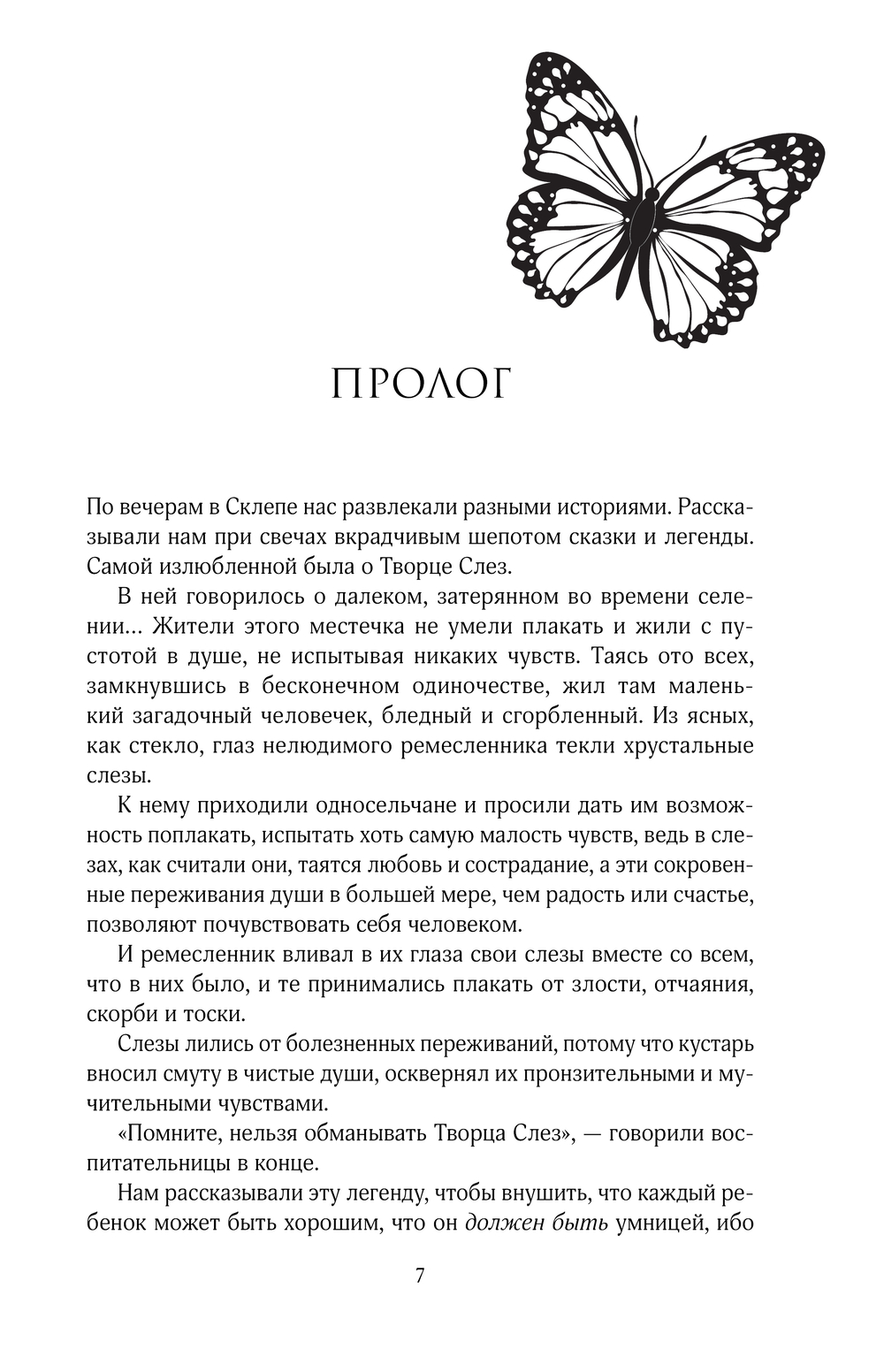 В сиротском приюте, где росла Ника, часто рассказывали истории. Самой излюбленной была о Творце слез, человеке со светлыми, как стекло, глазами. Он выполнял просьбы людей и заставлял их плакать.