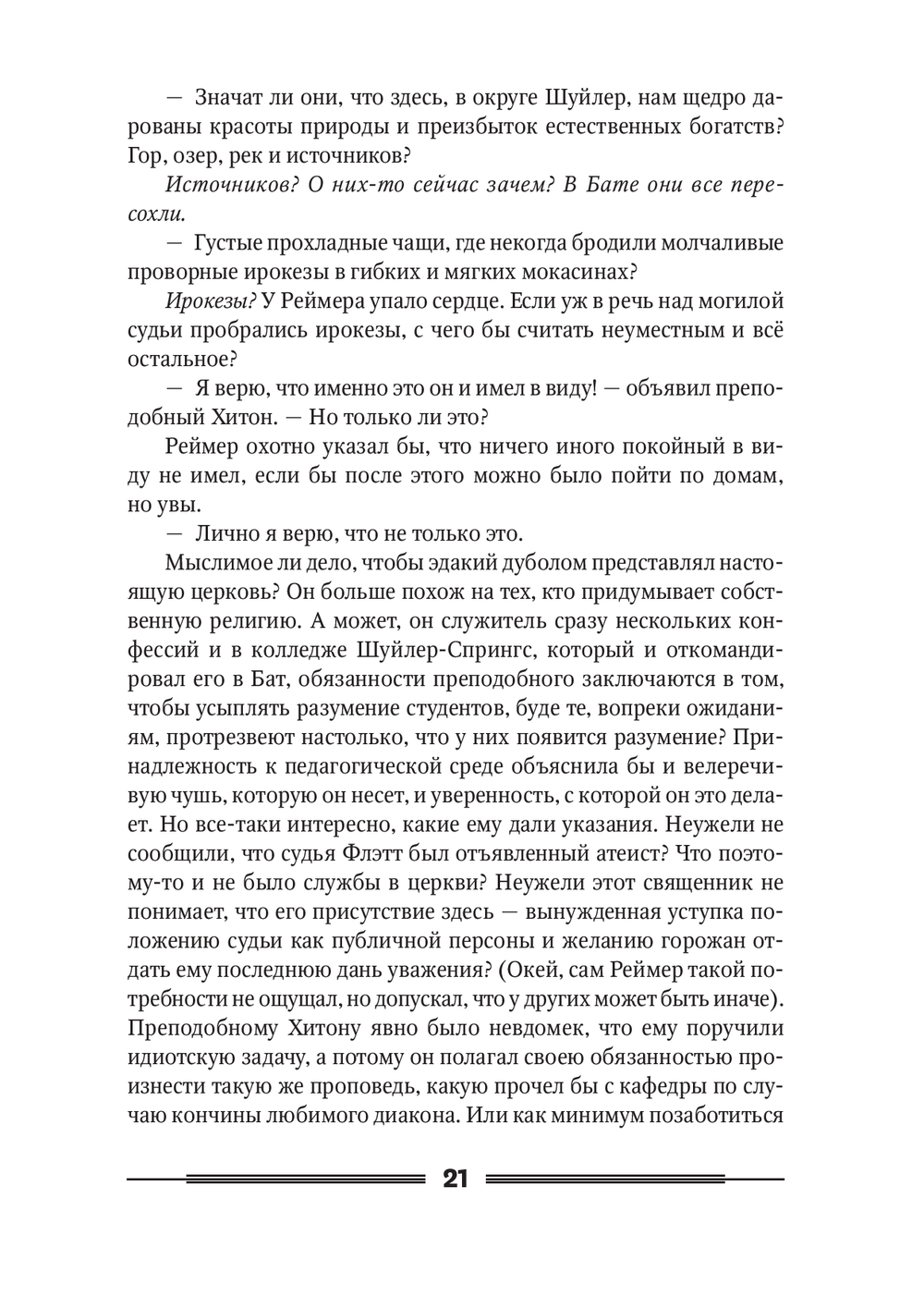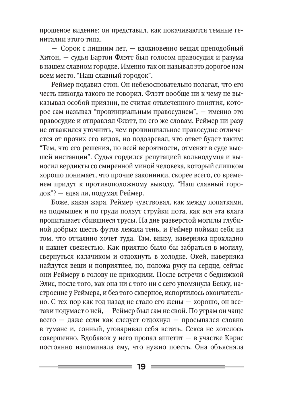 А ведь еще есть Карл Робак, продолжающий лелеять грандиозные проекты, и начальник полиции Дуглас Реймер, жена которого, убегая с таинственным любовником, в буквальном смысле добралась лишь до последней ступеньки лестницы, да и все прочие обитатели Норт–Барта, у которых проблем, что опавших листьев в осеннем лесу...