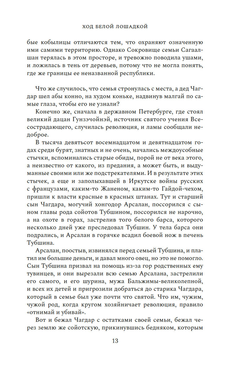 От былой роскоши осталась у Чагдара лишь Сагаалшан – кобылица, которую тот подарил молодой Бурят-Монгольской республике. С этого подарка и начинается история длиной в долгие семьдесят лет. Разруха после Гражданской войны, потери после Отечественной и – трудное созидание. Житейские беды и – помогающие преодолеть их взаимовыручка, доброта людей.