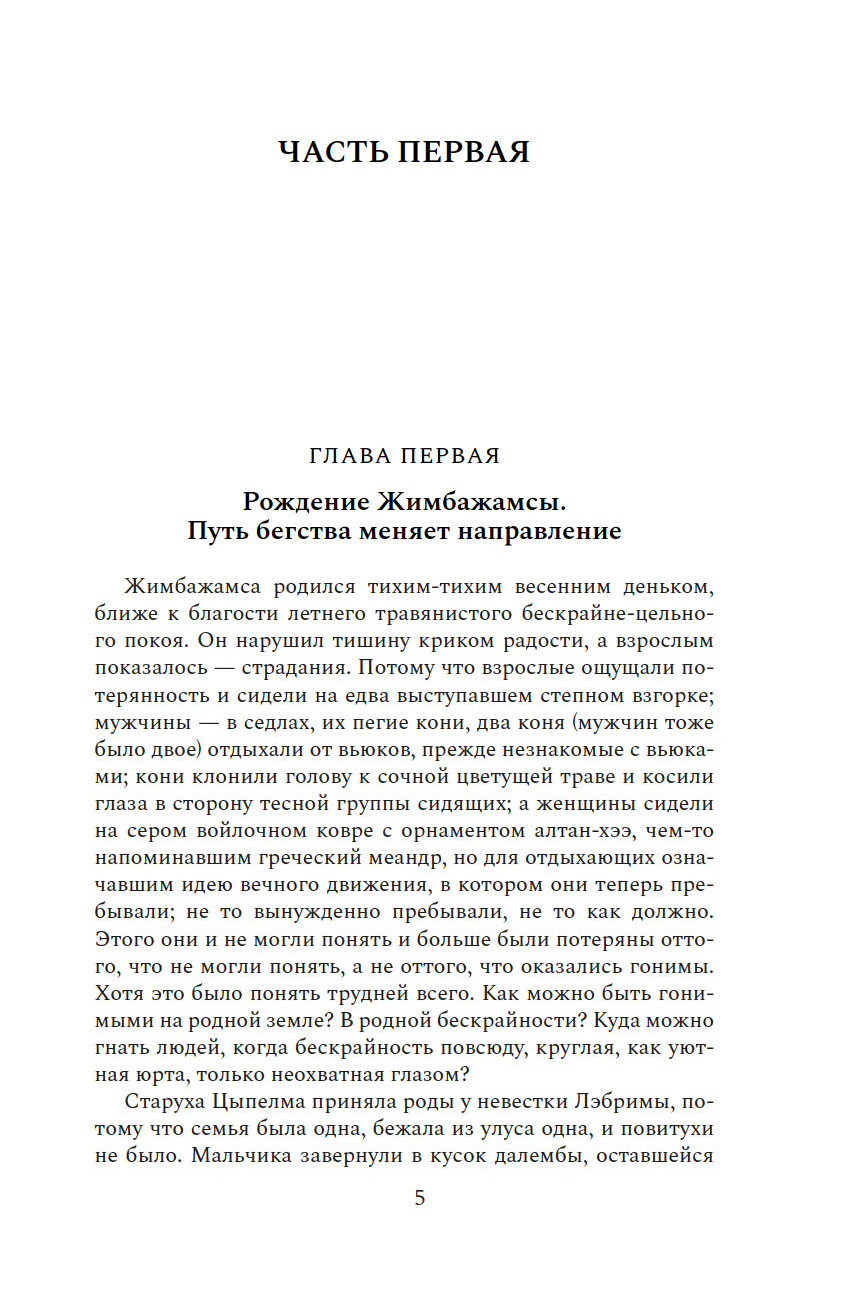Милостиво и щедро синее небо Байкала. Только на его защиту и помощь рассчитывал знатный бурятский купец Чагдар Булатов, спасаясь бегством со своей семьей в бескрайних степях в 1923 году. Потому младшего внука, которому суждено было родиться посреди цветущего разнотравья, назвал Жимбажамса, что означает «Океан щедрости».