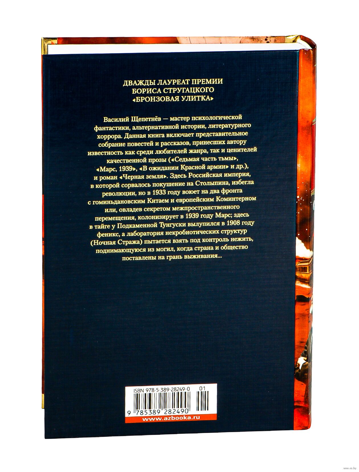 Василий Щепетнёв – мастер психологической фантастики, альтернативной истории, литературного хоррора, дважды лауреат премии Бориса Стругацкого "Бронзовая улитка". Данная книга включает представительное собрание повестей и рассказов, принесших автору известность как среди любителей жанра, так и ценителей качественной прозы ("Седьмая часть тьмы", "Марс, 1939", "В ожидании Красной армии" и др.), и роман "Черная земля". Здесь Российская империя, в которой сорвалось покушение на Столыпина, избегла революции, но в 1933 году воюет на два фронта с гоминьдановским Китаем и европейским Коминтерном или, овладев секретом межпространственного перемещения, колонизирует в 1939 году Марс; здесь в тайге у Подкаменной Тунгуски вылупился в 1908 году феникс, а лаборатория некробиотических структур (Ночная Стража) пытается взять под контроль нежить, поднимающуюся из могил, когда страна и общество поставлены на грань выживания…