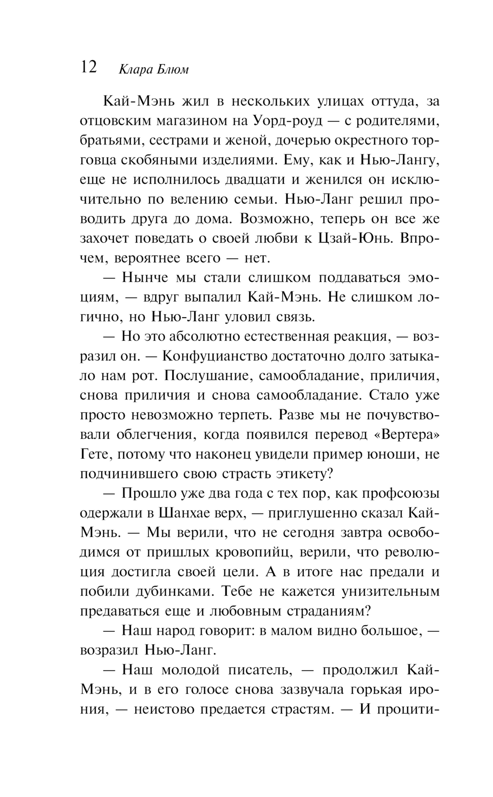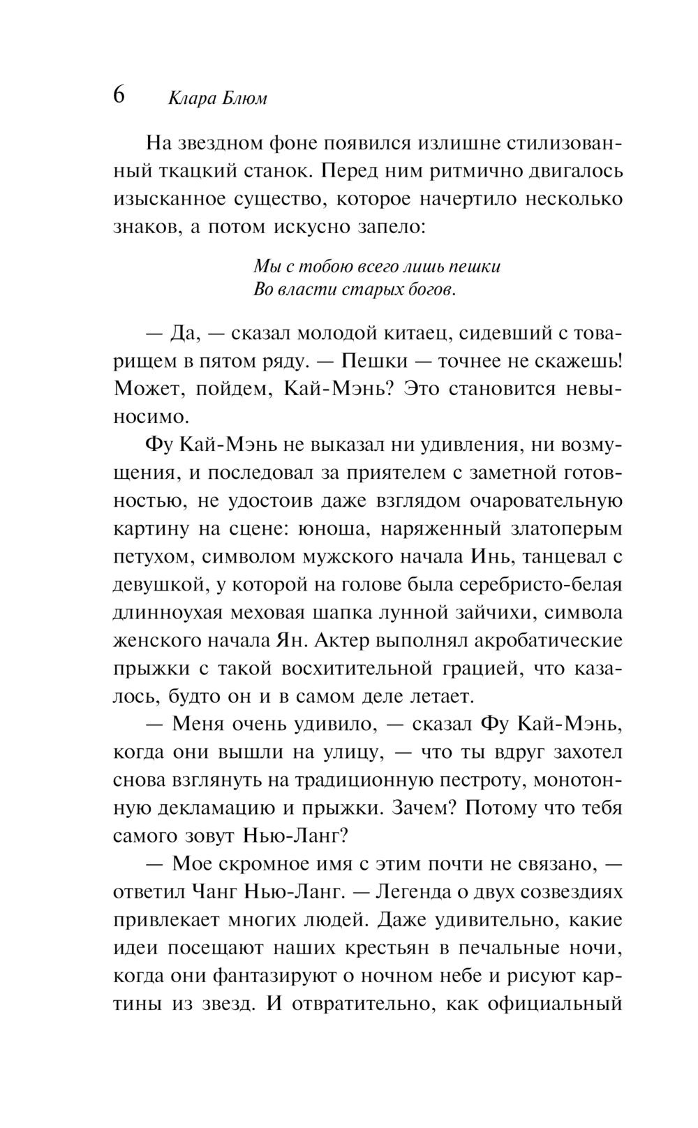 Клара Блюм родилась в Австрии. В 31 год она получила советское гражданство, а после Второй мировой войны уехала жить в Китай. Роман "Пастух и Ткачиха" написан в жанре автофикшн.